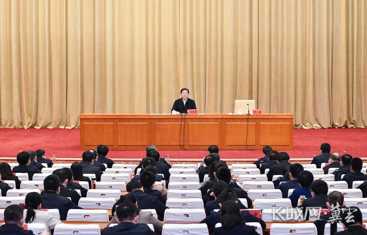 3月24日上午,河北省委书记、省人大常委会主任王东峰为2022年春季学期省委党校(河北行政学院)中青年干部培训班学员作报告。长城网·冀云客户端记者 张瑞雨 摄