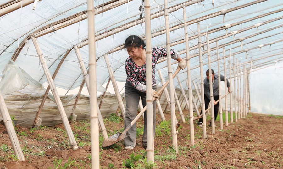 村民翻地松土,为移栽甜瓜苗做准备。刘晓迪 摄