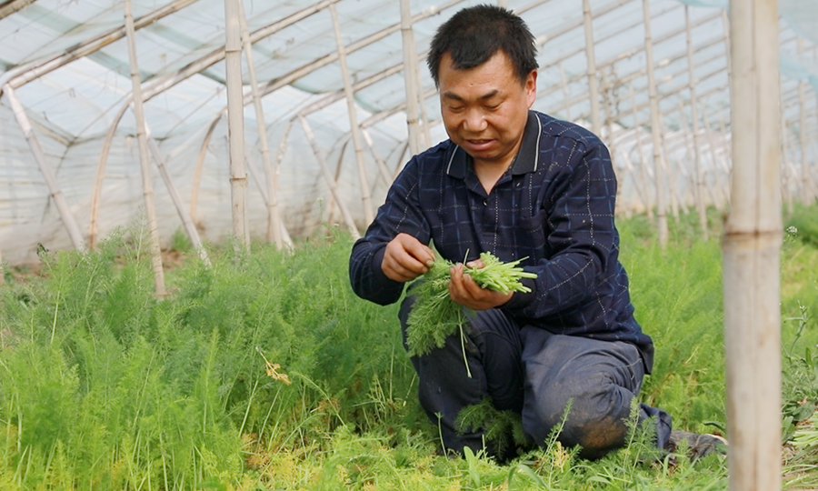 种植户高景轩在蔬菜大棚里忙碌着。啜瑞琪 摄
