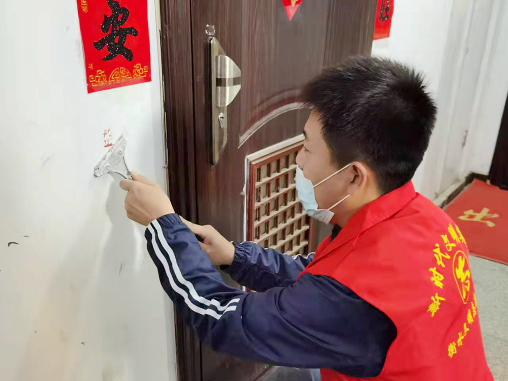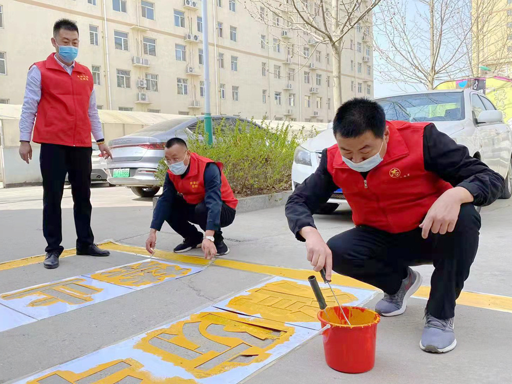 桃城区行政审批局志愿者为小区施划消防车通道标识。史雅琦 摄