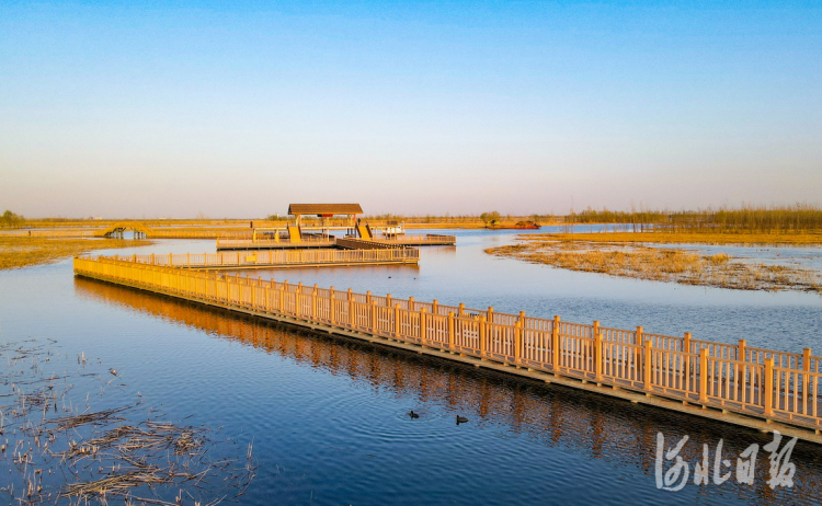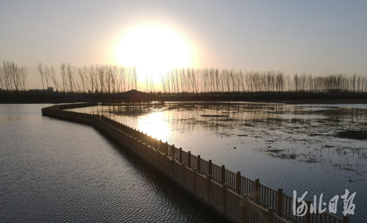 2022年3月26日,夕阳下的白洋淀新安北堤木栈道。 河北日报记者赵海江摄