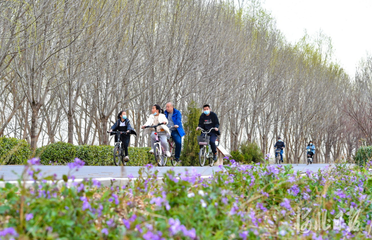 2022年3月26日,游客在堤顶路骑行。 河北日报记者赵海江摄
