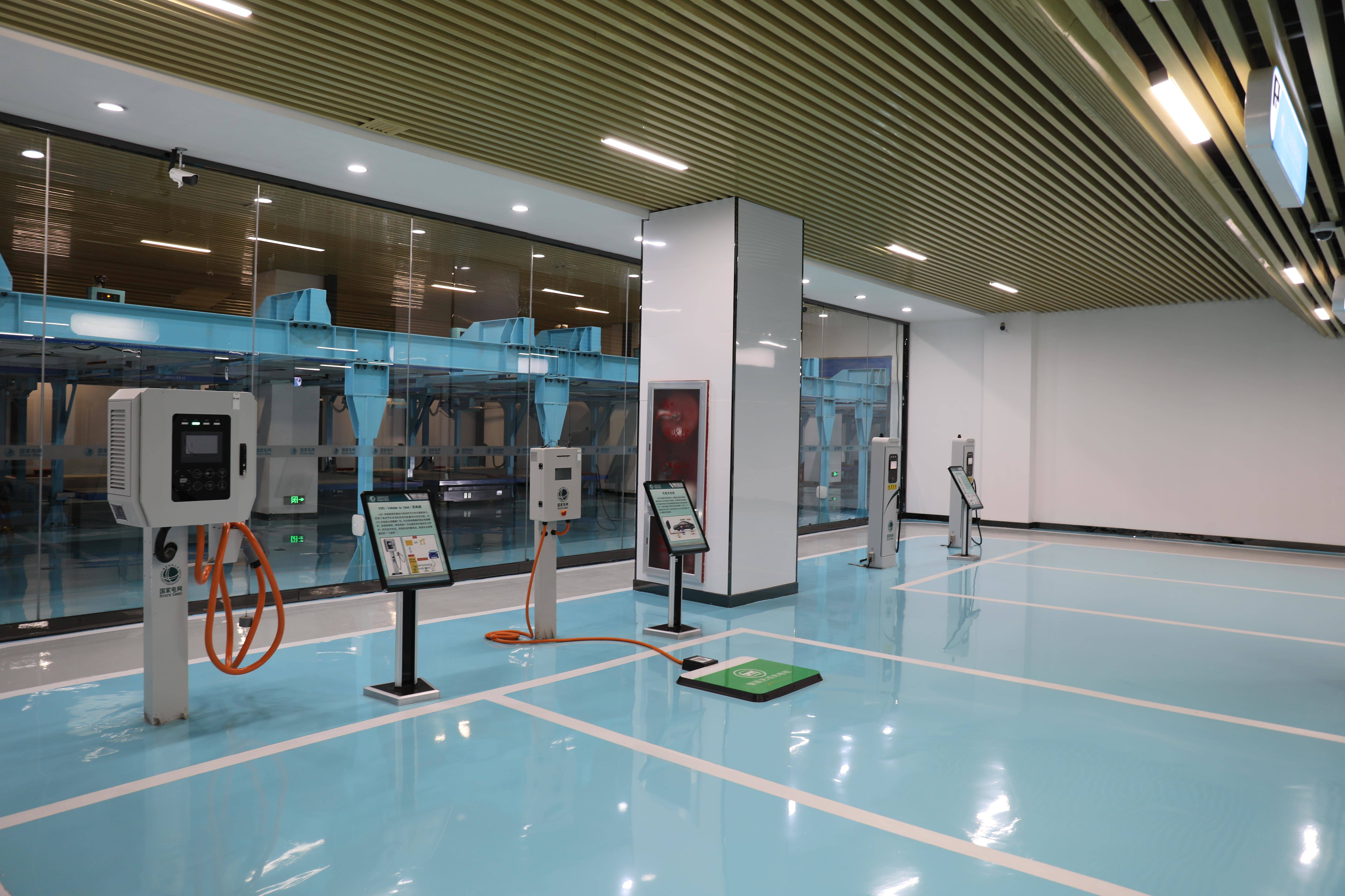 剧村变电站还融合建设了智慧充电站、智能交费服务等功能设施,智慧充电站内共有45个充电桩,用户来充电只需要把车停泊位,之后会智能机器人为汽车充电,充满电后还可实现自动泊车。王勇笑着表示,大家来剧村变电站,把车停好便放心的可以去游泳、健身了。