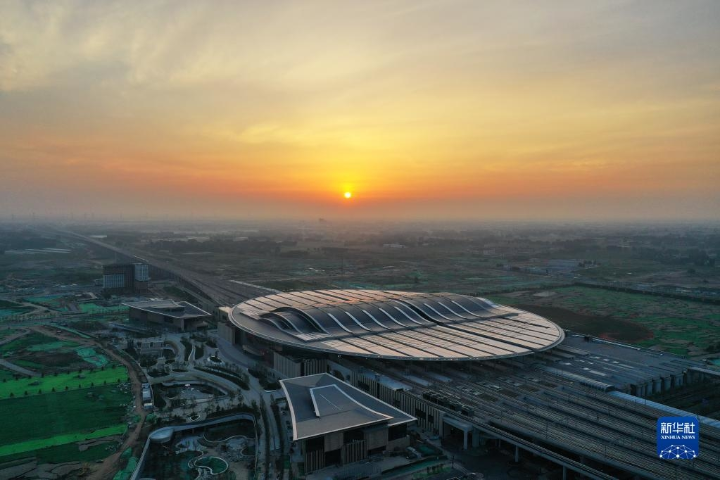 这是京雄城际铁路雄安站(2021年7月1日摄,无人机照片)。新华社记者 牟宇 摄