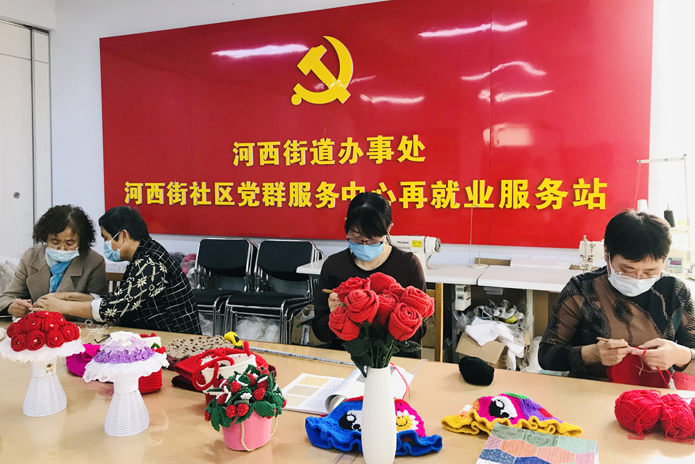 走进社区党群服务中心再就业服务站,只见妇女们三五成群围坐一桌,手中的钩针上下翻飞,一件件手工编织的工艺品正在制作中。“我们在走访中发现,社区就业困难人员主要分两类,一类是因为年龄大,另一类因身有残疾或家庭原因。”社区党支部书记种双泽告诉记者,经过多次市场调研,他们发现毛线编织、手工制作等项目深受就业困难人员欢迎。为更好地向群众宣传就业优惠政策、开展手工编织培训,该社区多方筹措资金,高标准打造了社区再就业服务平台。