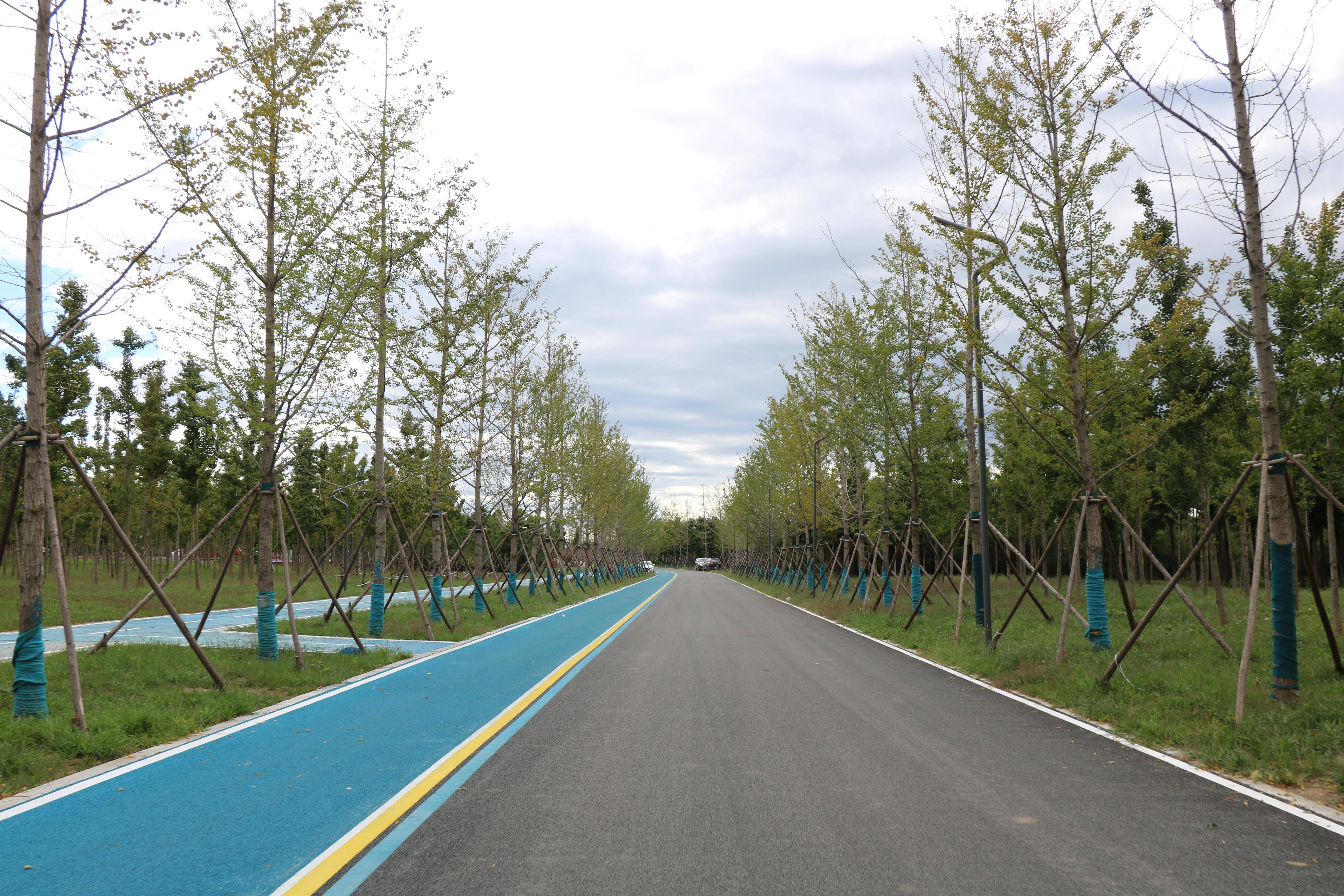 千年秀林景观提升绿道项目,栽植的银杏树是行道树(雄安集团生态建设投资有限公司资料图)