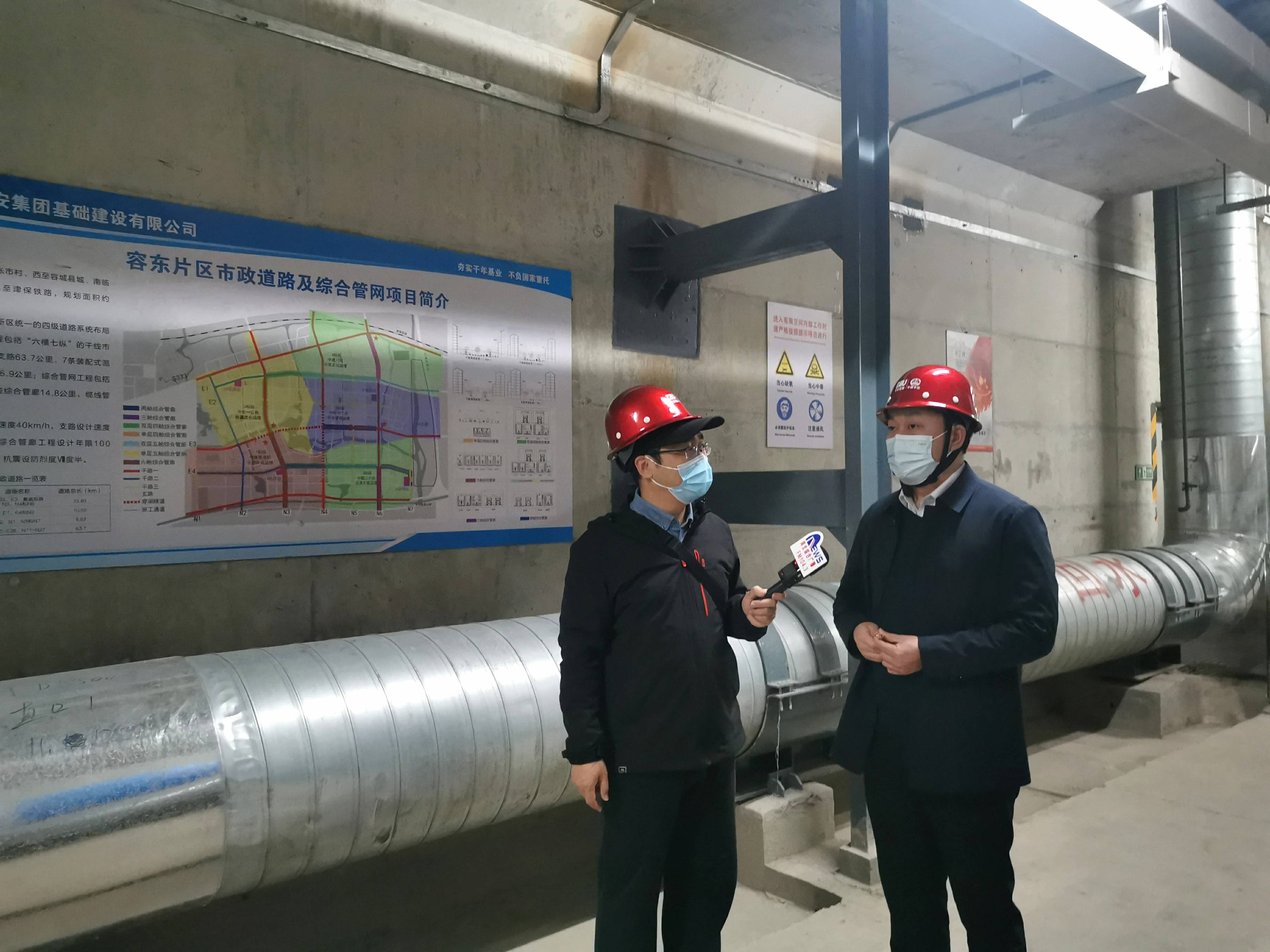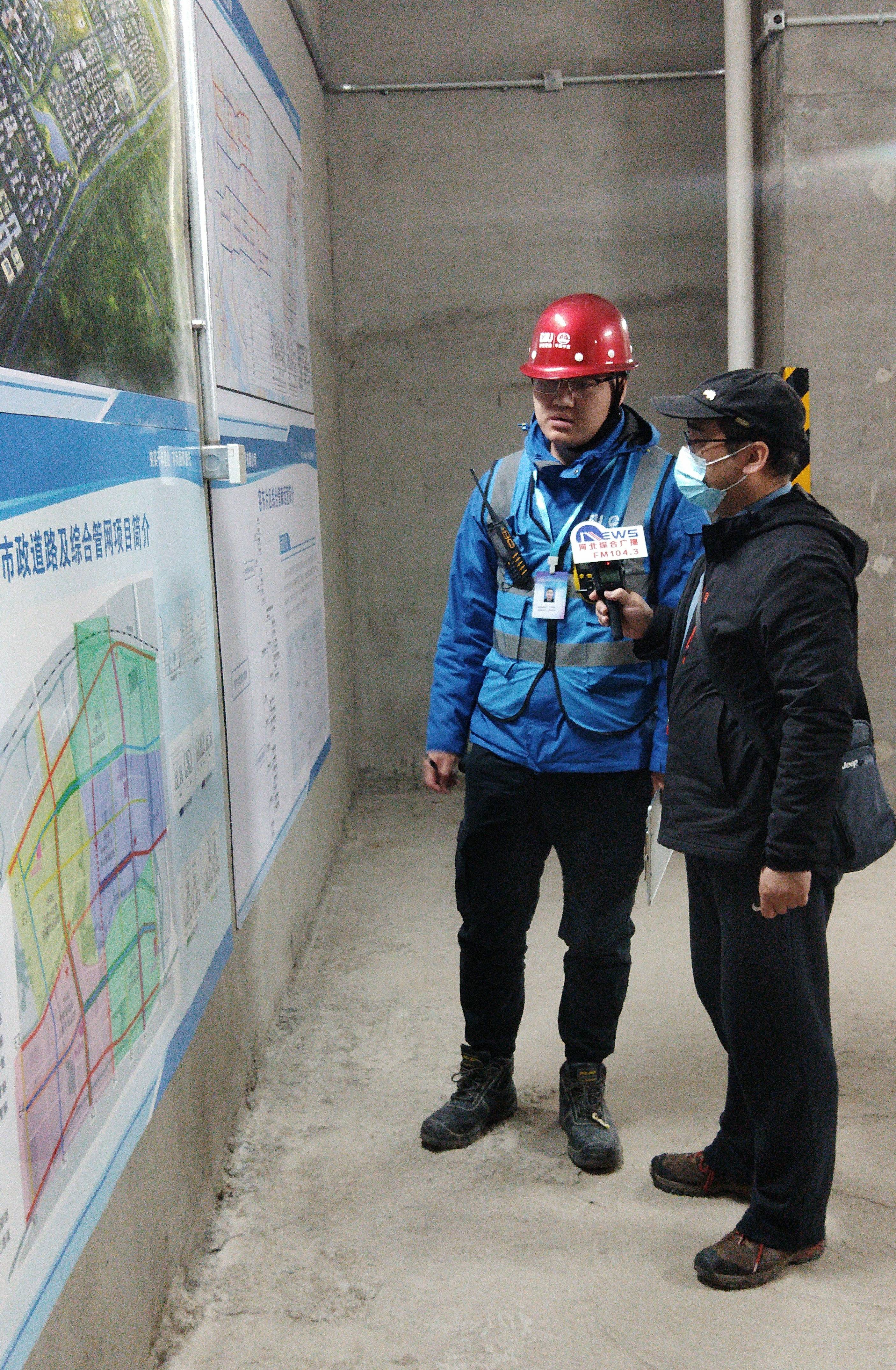 刘羽涵(右)给记者介绍雄安新区容东片区综合管廊的建设理念与过程