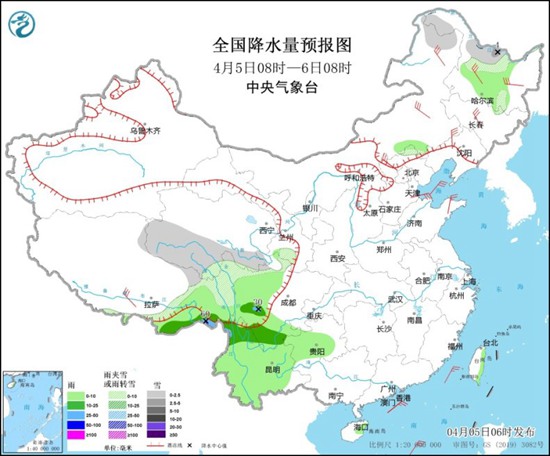 昨天,一股新冷空气将“造访”,由于其路径偏东,影响区域有限,仅东北北部及内蒙古东部一带出现雨雪天气,成片的降水仍集中在西南地区,其中西藏东部、云南北部、四川南部、重庆南部等地出现中到大雨,云南怒江局地暴雨;内蒙古东部、黑龙江北部和西部等地部分地区出现降雪或雨夹雪。