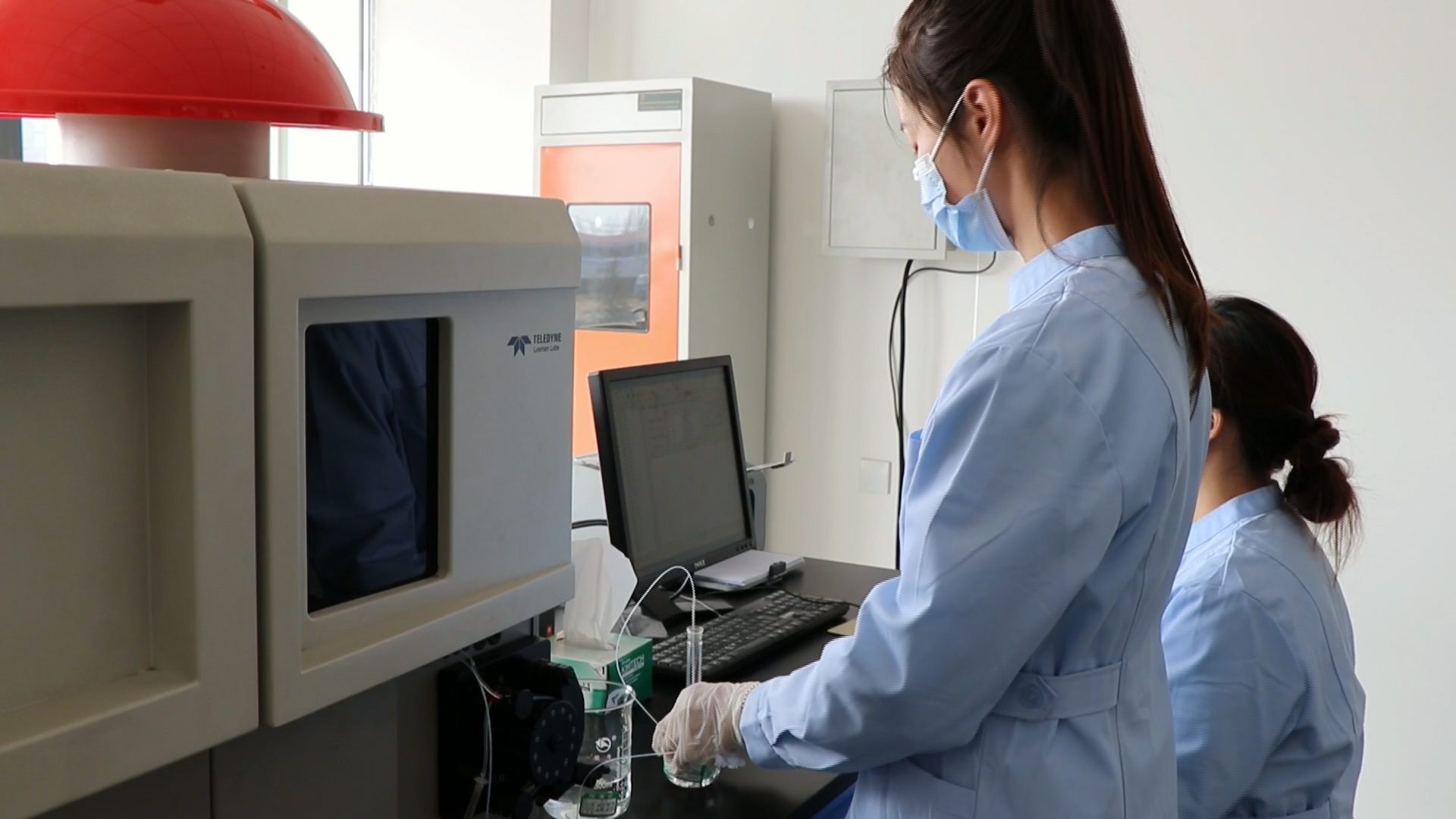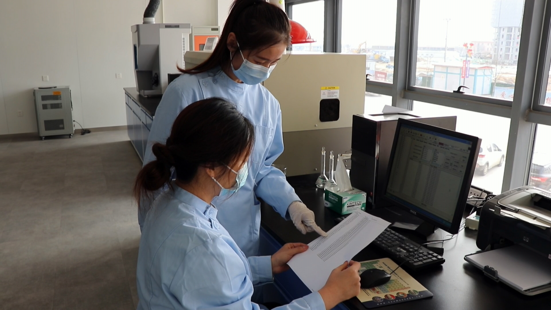 技术人员对丝网产品检测数据进行分析。谢朝华 摄