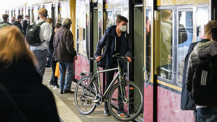 4月1日,人们在德国首都柏林佩戴口罩出行。新华社发,斯特凡·蔡茨摄