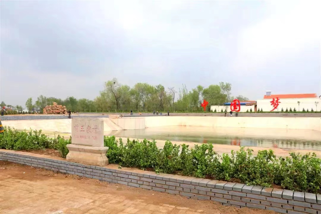 近日,沿着干净整洁的乡间小路,记者走进前王家村,房屋鳞次栉比,行道树郁郁葱葱,各类公益宣传展牌随处可见。顺着迎宾街一路向西走,便来到治理后的坑塘边,微风轻拂,碧波荡漾,鲜红的“中国梦”灯牌映照在清澈的水面上,一排排新栽植的绿植昂然挺立,在和煦的春光中焕发出勃勃生机。村民们忙着栽绿植、砌围墙、清砖缝,忙得不亦乐乎,一幅美丽乡村新画卷徐徐展开……