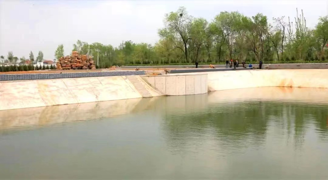 目前,坑塘岸边正在进行绿化,已栽种塔松160棵、女贞46棵、卫矛5000余棵。西侧假山音乐喷泉广场已进入收尾阶段,南面文化长廊及空地草坪铺盖即将陆续进场施工,预计五一前后完工。