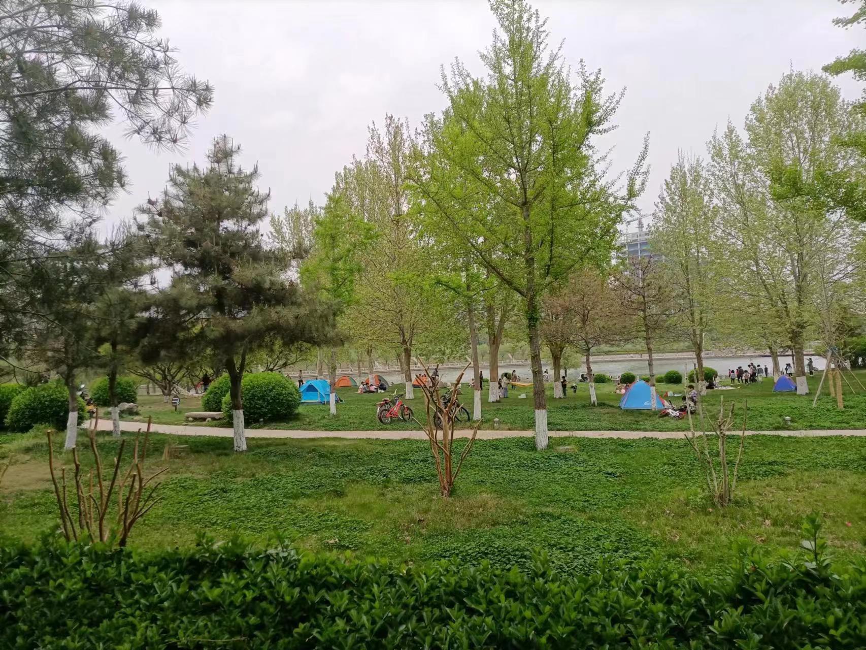 4月17日,记者沿衡水主城区滏阳河岸走访发现,到河边踏青游玩的市民众多,不少人在岸边的绿地上搭帐篷、享野餐、嬉戏玩耍,在人们的踩踏下,青青草坪遭到破坏,也让美丽景色大打折扣。