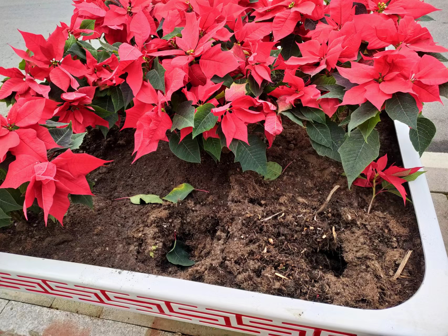 近日,衡水市园林中心在榕花北大街新增的150个景观花箱中栽种了1300余株时令花卉一品红,花开正艳,让人赏心悦目。可令人遗憾的是,这些栽种不久的鲜花,被人挖走了300多株,留下一个个难看的土坑,可谓大煞风景。市园林中心工作人员提醒,一品红汁液有微毒,切莫采摘。