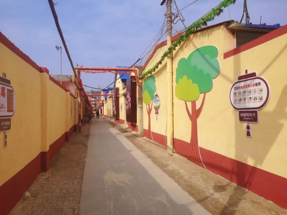 鸡场西巷紧邻永安路小学,全长300米,由于年代久远,空中线缆错综复杂,道路破损、墙面破损严重。针对巷子内存在的乱堆乱放、道路坑洼、线缆杂乱等问题,路北街道多次协调区住建局、区综合执法局、电力公司、三大运营商等部门,对胡同内的电缆电线进行了重新布线、扎捆,对路面进行了重新铺设,彻底改变了“老、破、乱”面貌,为居民营造出一个干净整洁的生活环境。与此同时,路北街道对鸡场西巷两侧的墙体进行了重新粉刷,结合胡同紧邻永安路小学的实际,将社会主义核心价值观、文明城市创建、和谐邻里等内容做成墙绘,打造“中华传统美德”和“创城我先行”主题文化长廊,让社会主义核心价值观融入市民日常生活,成为文明新风“流动课堂”,让学生在耳濡目染中接受道德的洗礼,在潜移默化中感受文化的熏陶。