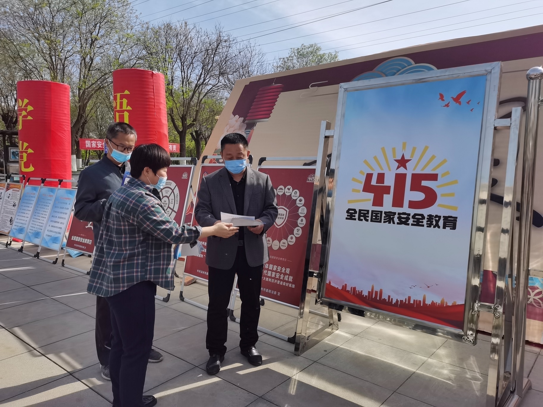 在社区,宣传人员设置国家安全主题宣传展板,为群众发放国家安全知识宣传资料,宣讲国家安全知识,并播放宣传片,让广大群众深入了解隐藏在身边的危害国家安全的行为,进一步增强人们的国家安全意识。