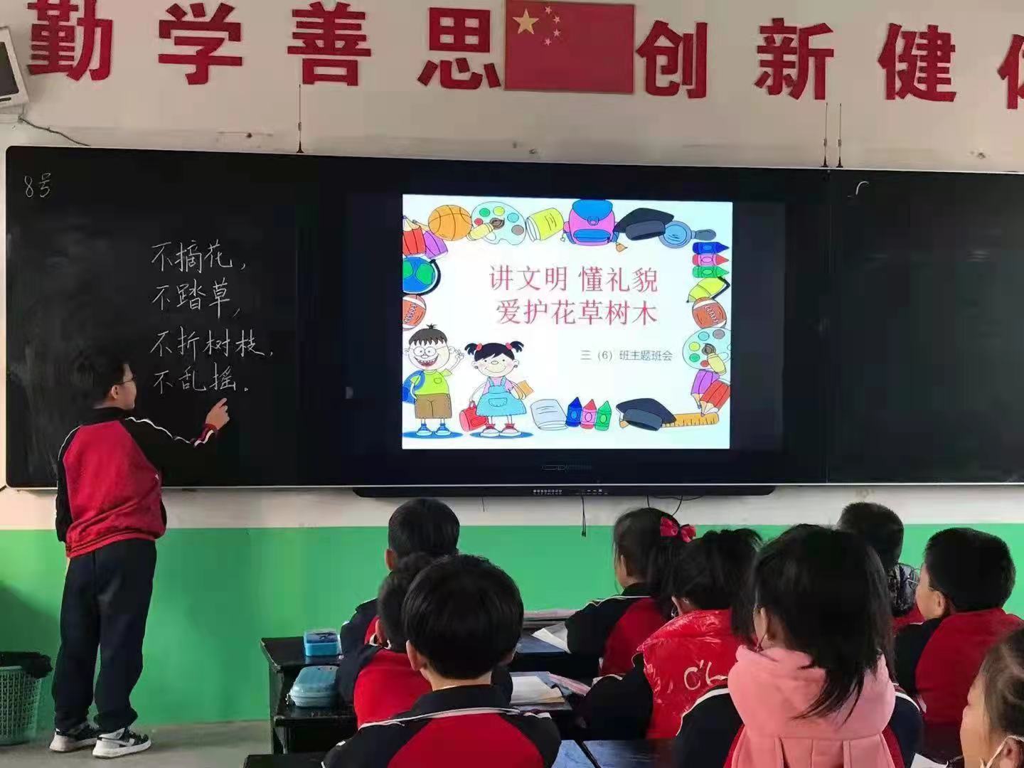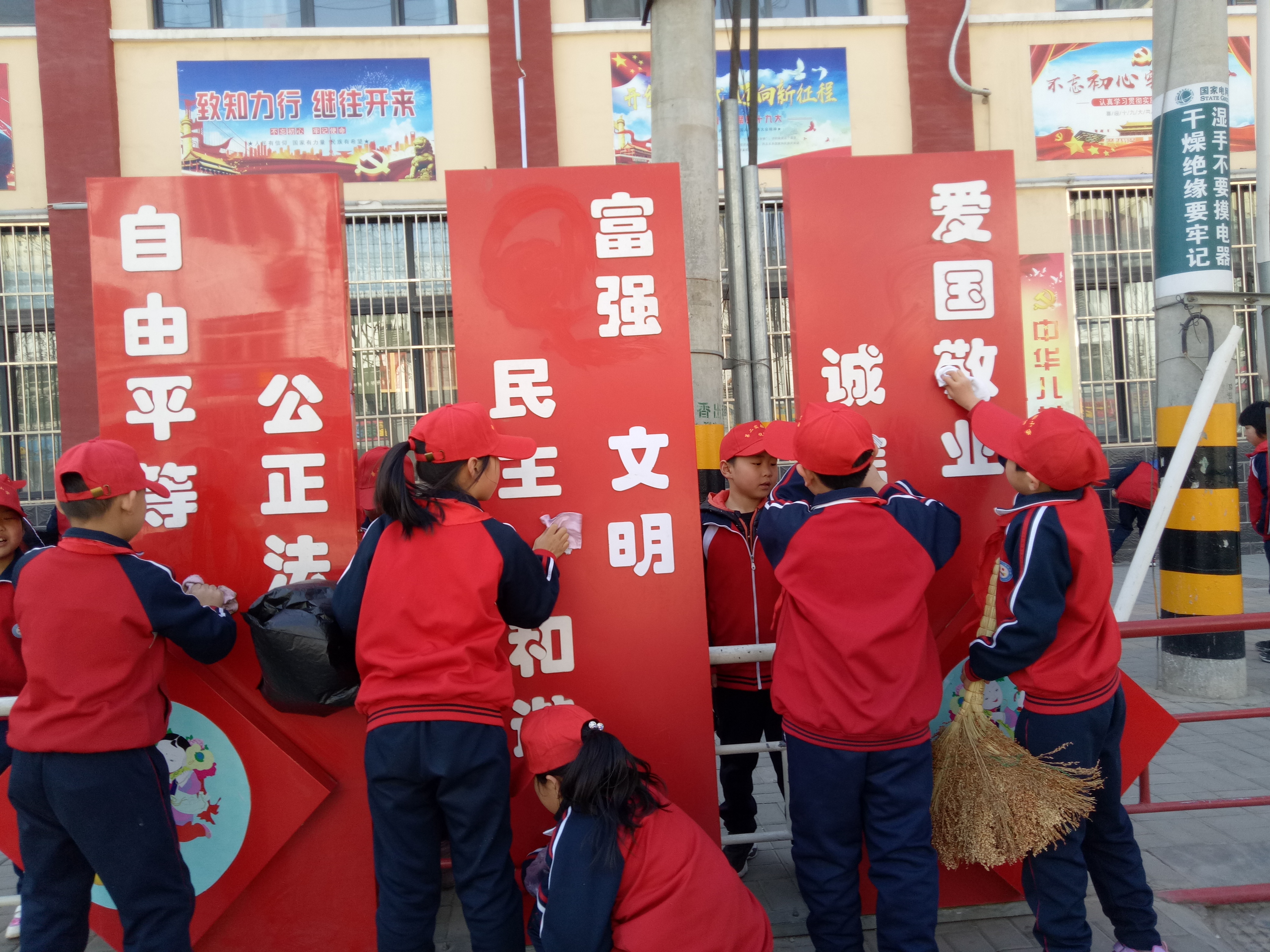 强化思想道德教育,塑造文明创建之体。该校积极开展学生思想教育,不断探索德育工作的新途径,提高德育工作的实效性。他们积极组织学生参加各种形式的活动,着力对学生的思想道德进行教育,让学校成为文明之花的“培养室”。利用国旗下讲话、“扣好人生第一颗纽扣”系列活动、重大传统节日手抄报、“学雷锋”系列活动、“新时代好少年”评选活动、“快乐假期,多彩实践”假期活动、“时刻听党话,永远跟党走”读书教育活动等对学生进行思想品德教育,构建了“学校、社会、家庭”三结合的德育网络。此外,班级设置了好人好事记录本,学生将每天所做的善事记录下来,鼓励全校师生多做好事,记录本也成了激励学生成长的一面旗帜。