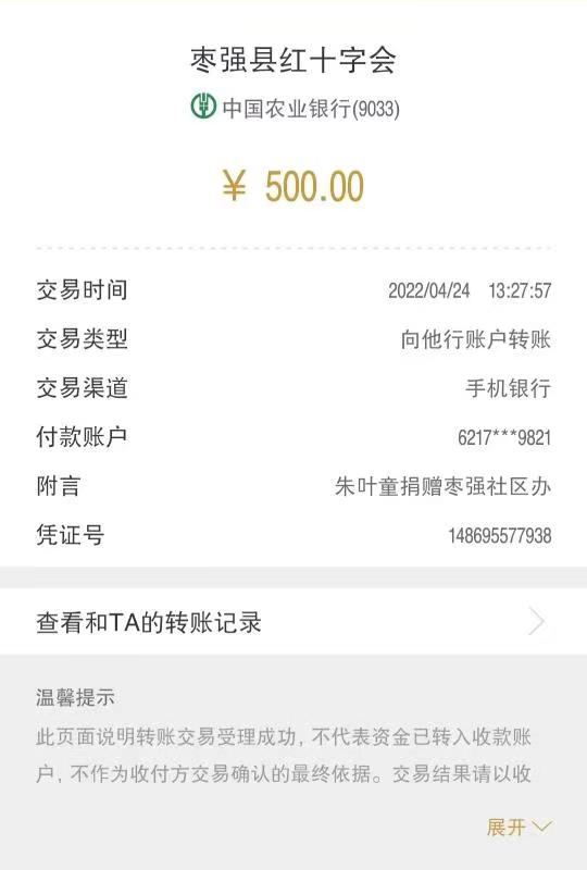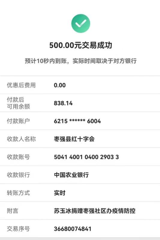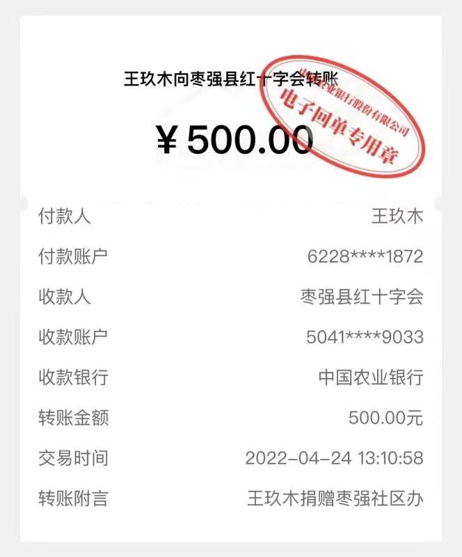 4月24日,枣强县红十字会收到了枣强籍青年学子王玖木转来的500元善款,委托工作人员购买一些生活必需品支援社区疫情防控工作。王玖木现在就读于成都体育学院,是该校乒乓球运动训练专业一名大三的学生。他品学兼优,是学生会干部,并多次获得校级奖学金,业余时间他还积极参加社会实践活动,并靠着乒乓球特长来贴补生活。“现在我虽然人不在枣强,但那里有亲人和朋友,疫情隔不断我对家乡的牵挂。”王玖木表示,希望通过捐赠略尽绵薄之力,与家乡人民一道共克时艰。