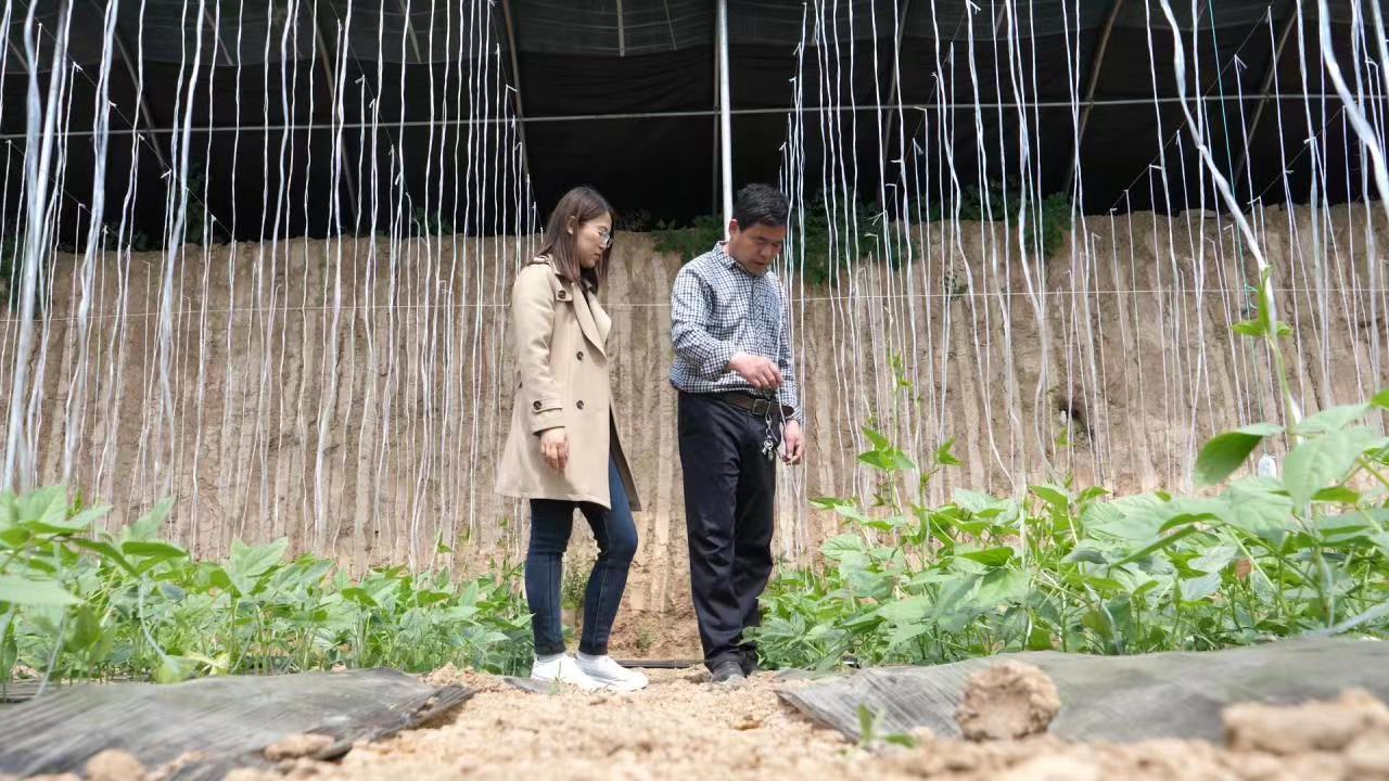 查看豆角秧长势。杜得天 摄