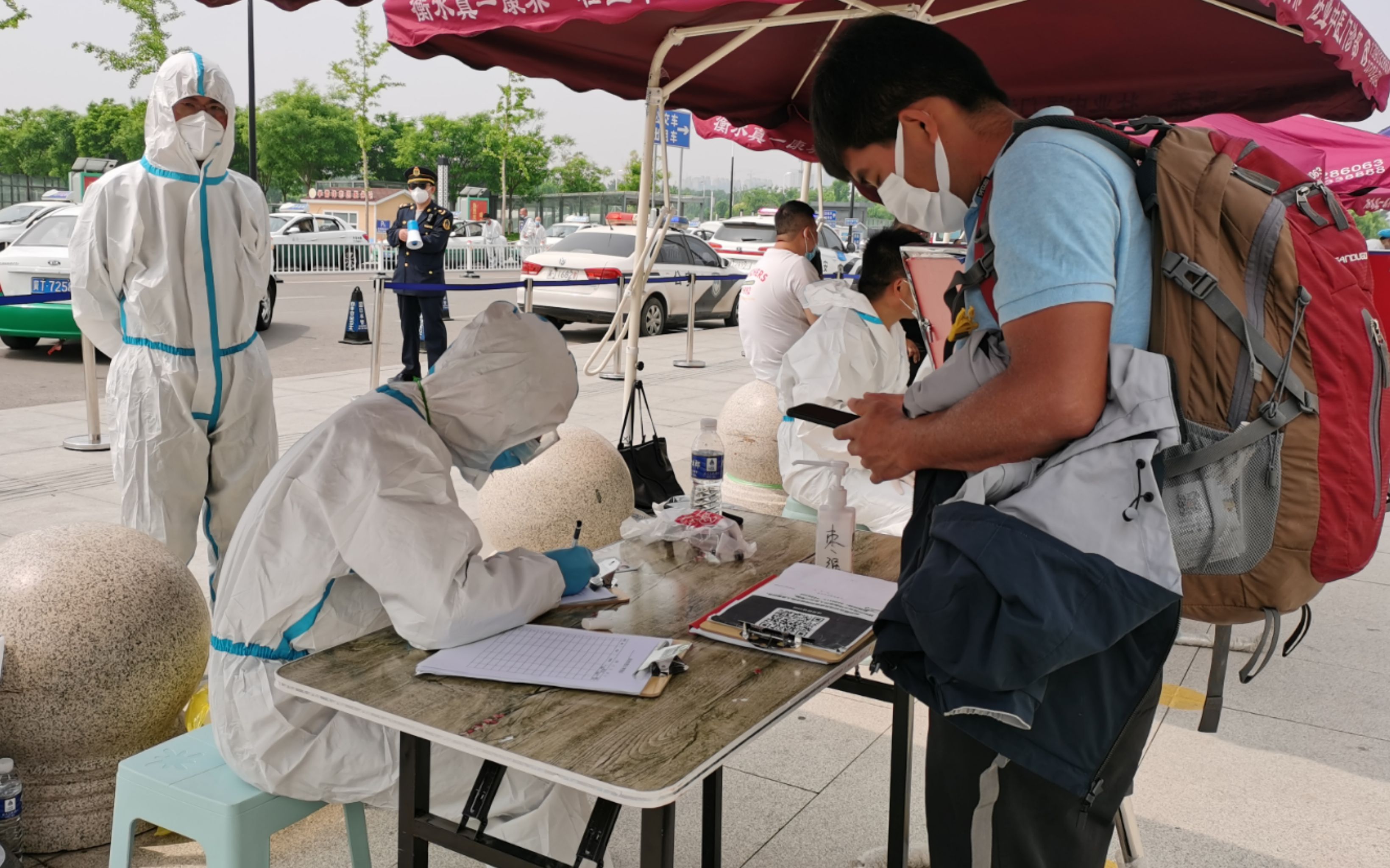 “各位旅客朋友们,按照衡水市疫情防控要求,请下车的旅客到目的地所在县市区或者中转区登记……”4月25日上午,在高铁北站,广播里正循环播放防疫政策,提醒来衡返衡人员。现场,各县市区及交通、公安、卫健等部门各司其职、各尽其责、各守其位,一切井然有序。10时40分,出站旅客在检疫通道依次进行体温检测、查验健康码行程码、现场采集核酸后,按照属地原则到目的地所在县市区登记区做好个人信息登记。随后,在工作人员引导下,有私家车的自行离开,无私家车的乘坐出租车有序离开。