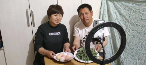 4月23日下午,青龙满族自治县三拨子乡胡杖子村村民蔡江家布置成了一个小小的网络直播间,蔡江和女儿化身带货主播,面对手机镜头,热情地介绍着乡村特产家鸡蛋。