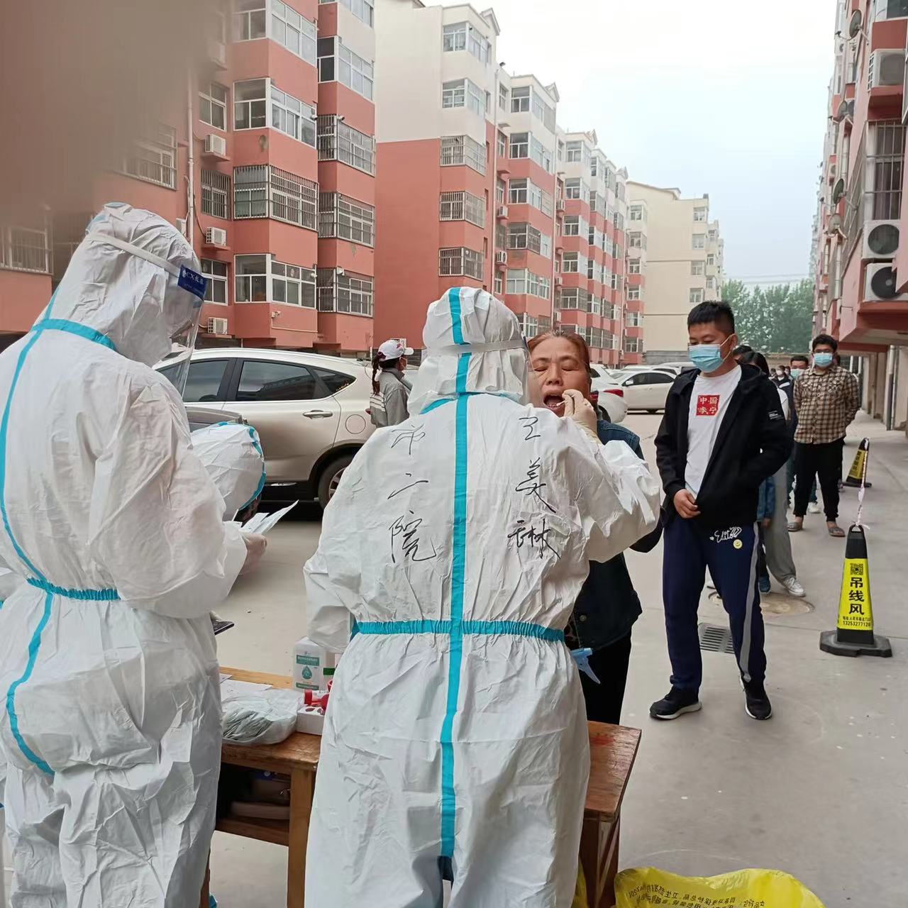 “接到通知的那天,我刚刚下夜班,还没回家就赶紧去领物资,坐上了来枣强的车。”枣强疫情形势突然严峻,分派给王美琳等人的核酸采样任务十分繁重,“第二天,我们就开始进小区采集核酸,平均每人每天采集400余人次,常常是回到驻地做完个人消毒、分拣好物资后,我们倒头就能睡着。”王美琳说,即使在睡梦中,她还时常机械性地重复着手消、采集等动作。此外,因为承担着次密接人员的入户采集任务,她们每天下午都需要爬楼,“累倒是其次,最主要的就是热,感觉每个毛孔都在往外冒汗。一个班上下来,防护服内的洗手衣被汗水泡得直接深了一个色调。”不过,王美琳和队员们都没有喊过苦,“居民们十分配合我们的工作,大家都相互支持、体谅,尤其是这几天,疫情形势逐渐好转,这让我很是欣慰,感觉再苦再累也值得了。”