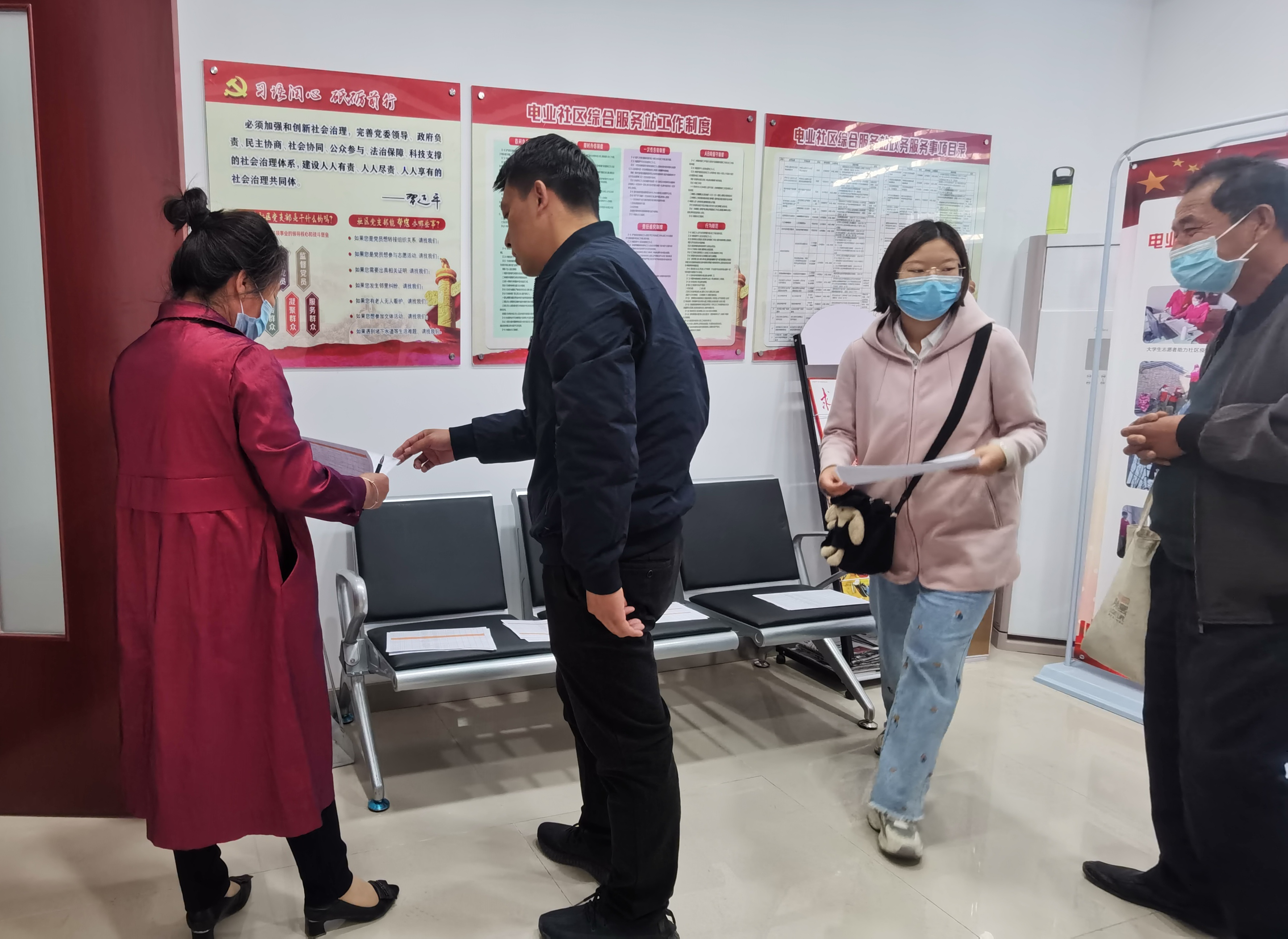 4月30日,记者如约到达社区,一看现场情况,就“知趣”地闪到一边,等着社区书记姜杰交待完所有工作。