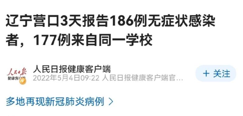 5月2日0时至24时,辽宁营口市报告新增本土无症状感染者45例,现住址均在辽宁农业职业技术学院。