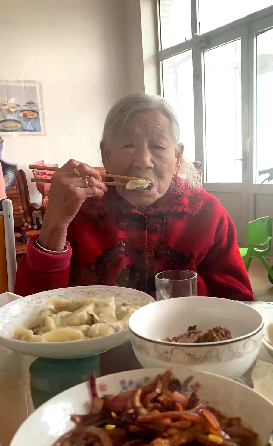 中午时分,热气腾腾的饺子和炒菜上桌了。“来吧,咱们一块祝老娘母亲节快乐!”大家一齐端起手中的杯子,送上节日祝福。冯老太也兴致高涨,仰头抬脖就是一大口白酒,“今儿高兴,多喝点。”喝酒并不是一时兴起,而是冯老太的养生“秘诀”之一——每天二两酒,舒筋活血。孩子们说,老人从年轻时就每天两顿酒,但是很自律,从来不多喝。