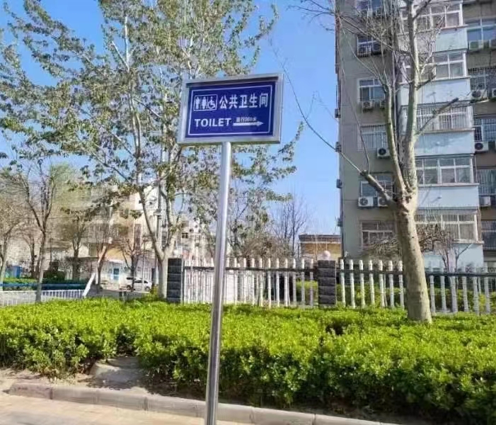 小厕所,是关乎城市文明的“大问题”。今年,为更好地解决市民“如厕难”问题,助力全国文明城市创建,市环卫中心对市区主次干道进行了现场考察、测量统计,在有公厕的主次干道上每隔500米安装1个公共卫生间指示牌。新安装的公厕指示牌底色为蓝色,厕所标志和字体颜色均为白色,标识文字采用中英文对照的形式,方向和距离一目了然,具有美观、清晰、明了等特点。市民按照指示牌能在最短的时间内找到公厕。
