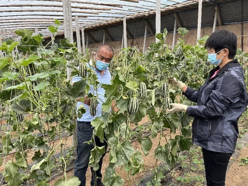 张增峰查看甜瓜的长势。深州市融媒体中心供图