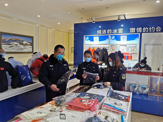 张家口市市场监督管理局与张家口市公安局对侵犯冰墩墩的违法行为开展联合检查。 赵铁民摄