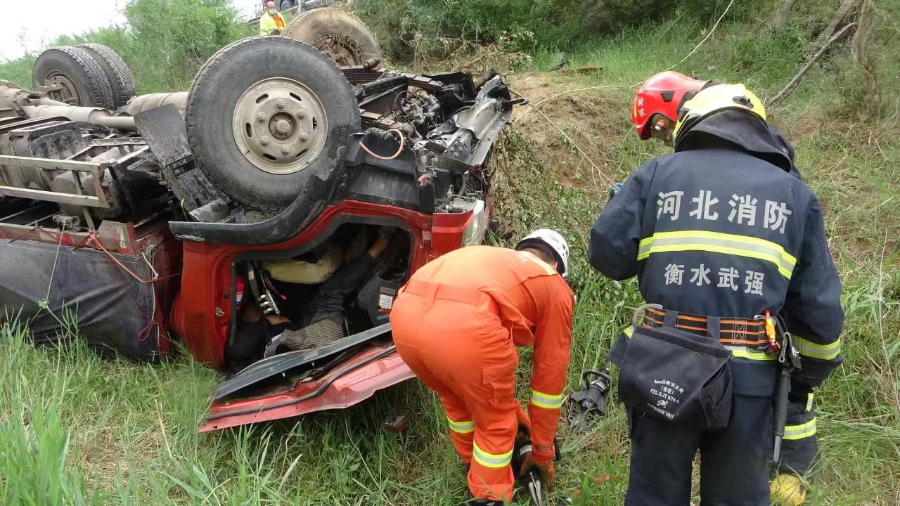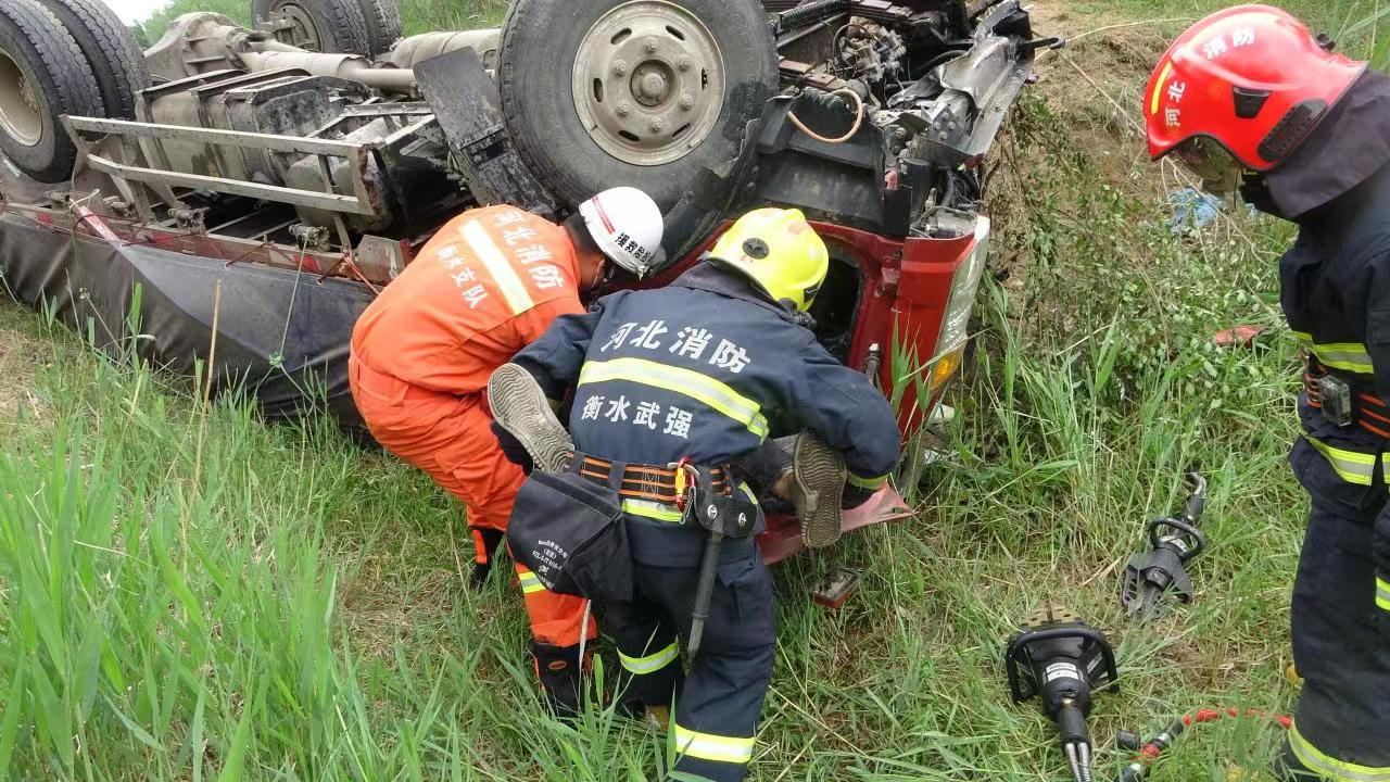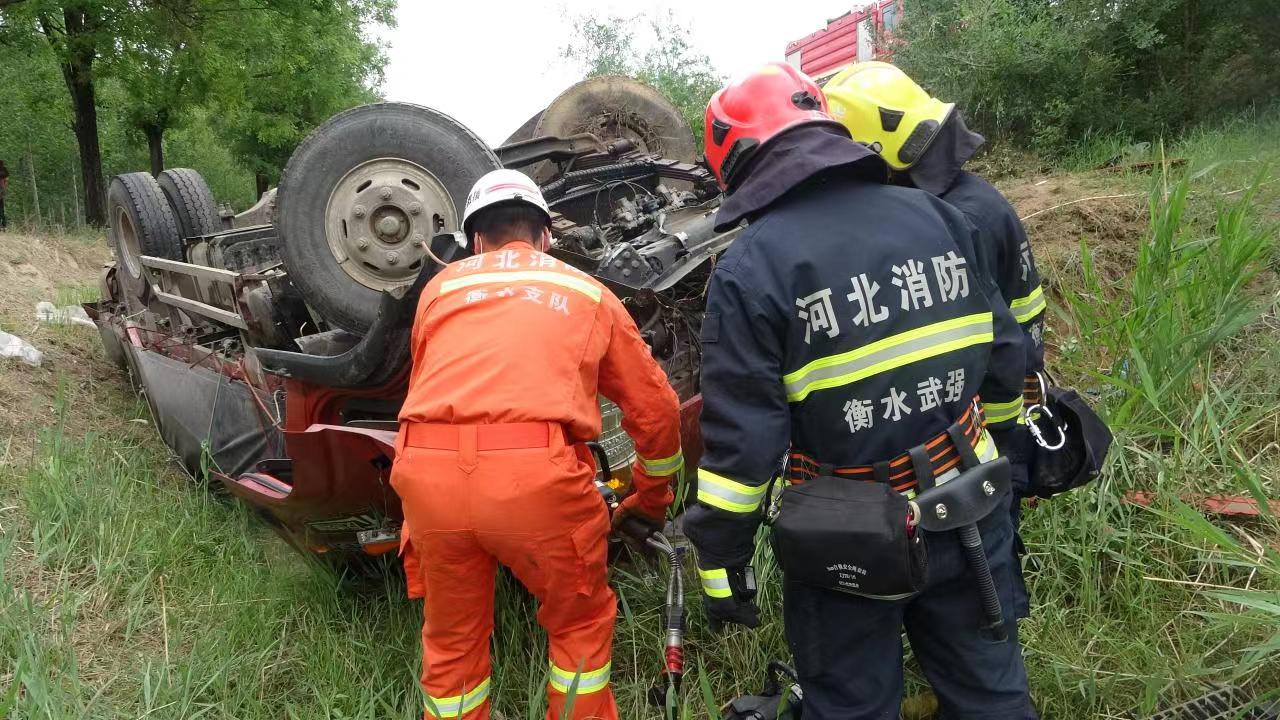 5月9日13时27分,武强县石黄高速183公里处一辆货车发生侧翻,导致1人被困车内。衡水市消防救援支队武强大队接到报警后,立即出动3车15人赶赴现场实施救援。