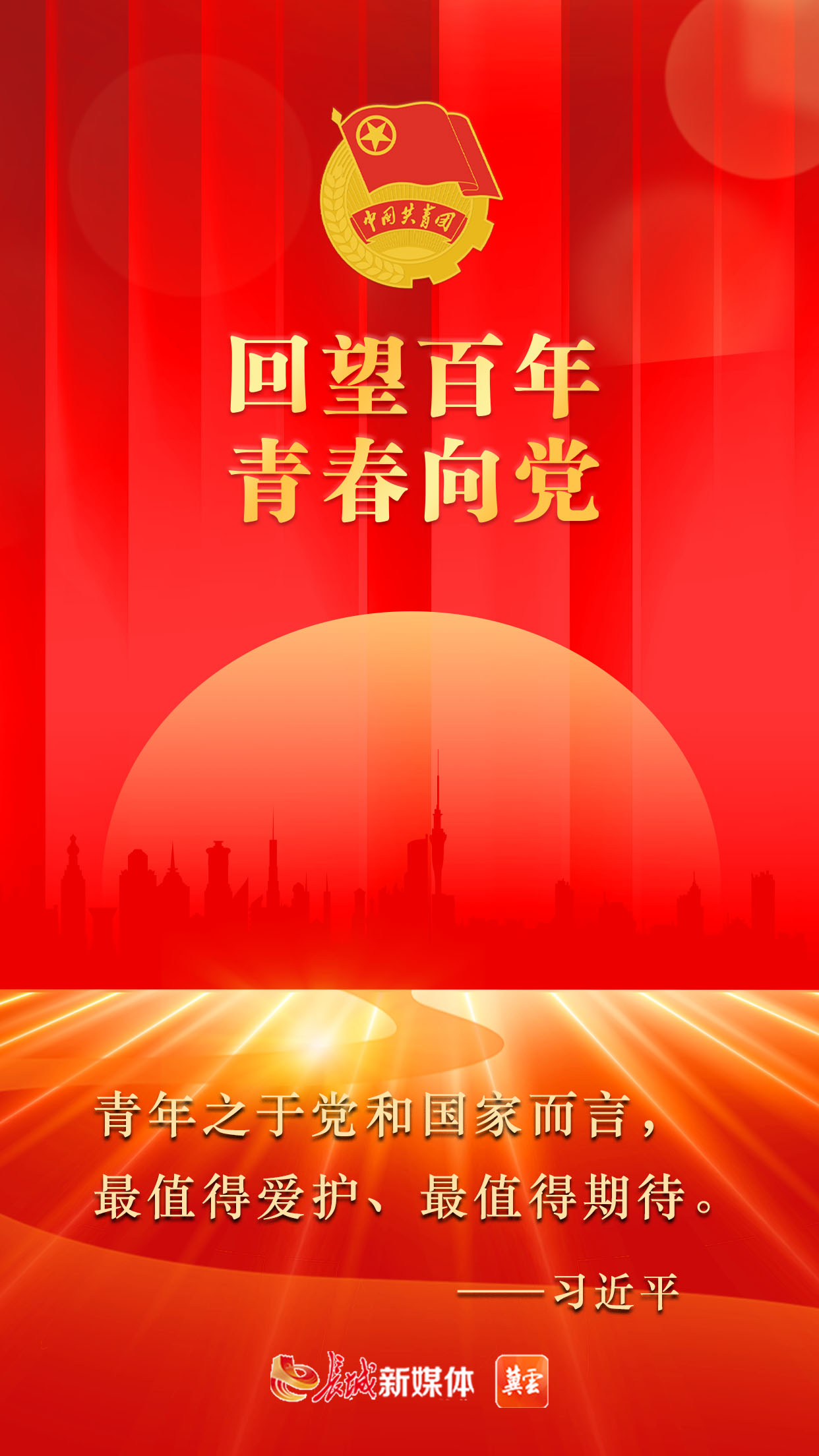 回首百年,红日初升,其道大光;河出伏流,一泻汪洋。历史的叙述里,随处可见青春的奋斗——历史从未忘记,在中国共产党的直接关怀和领导下,在五四运动的直接感召下,中国共产主义青年团宣告成立,青年成为中国革命汹涌洪流中的“后浪”。伟大的党,缔造了光荣的团。历史从未忘记,枪林弹雨中跃动着青春的身影,建设工地上流淌着青春的汗水,改革大潮里涌动着青春的创造。青年是党的“革命喇叭”“运动先锋”"战斗勇士"。历史更不会忘记,那些定格在脱贫攻坚战场的背影与笑脸、那些绽放在抗击疫情一线的无悔无憾的青春……可以说,共青团百年历史,就是一部以“青春之我”成就青春之国家、青春之事业的奋斗史。