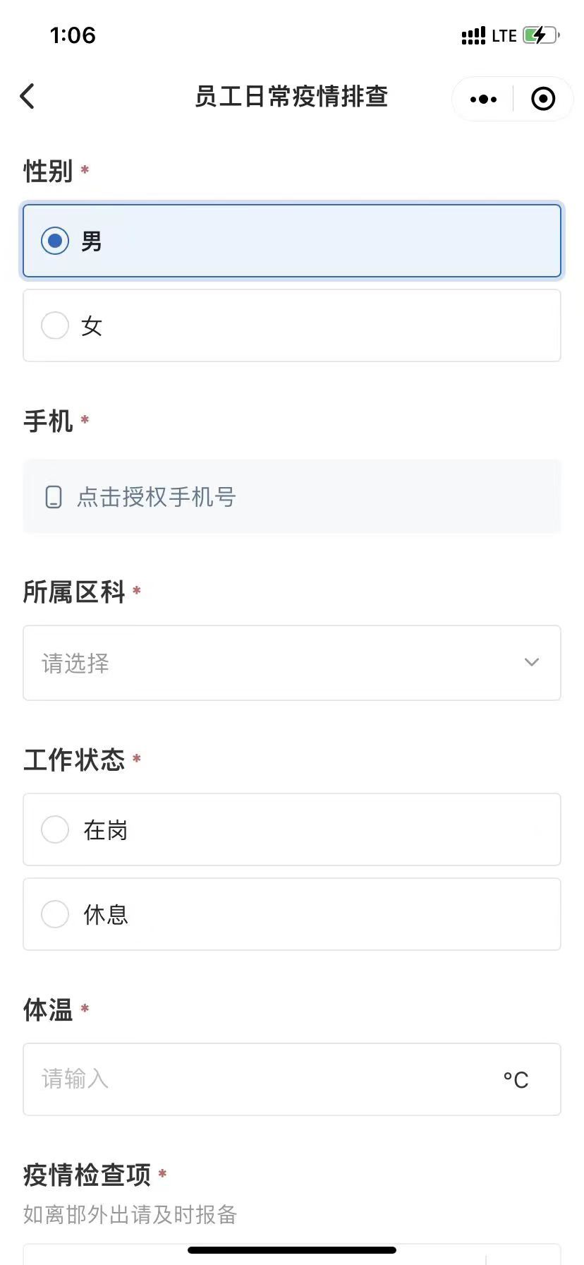 杨策村:你打开微信,去扫二维码,扫了之后它就会出现很多选项,就是你点每日排查之后,进入就是个人信息,姓名住址,家庭电话,每日体温,是否有接触,这就很直观、很清晰,然后每天去点这个。这样节约了职工的时间,因为职工每天下井很辛苦,主要是想解放他们这个繁琐的程度。