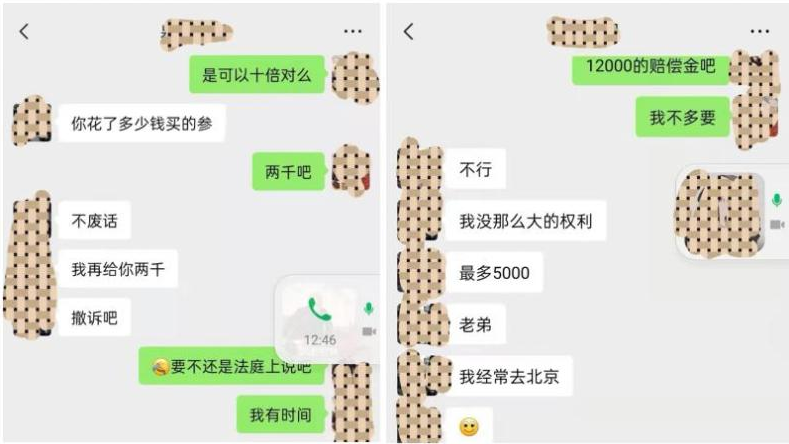 “我只是想讨回一个公道,如果到法庭上见的话,那就是10倍的赔偿,两万元!”