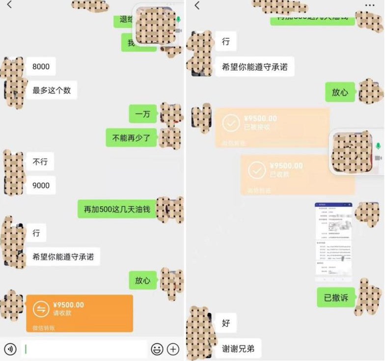 在一个十几个人的微信聊天群里,群主“红枫”正在给徒弟们直播一场在线打假:“红枫”以购买的2000元营养补品是假货为由,在某网络平台上传证据并投诉卖家,后卖家为让其撤销投诉不再纠缠,讨价还价一番后,最终转来9500元的私了费。