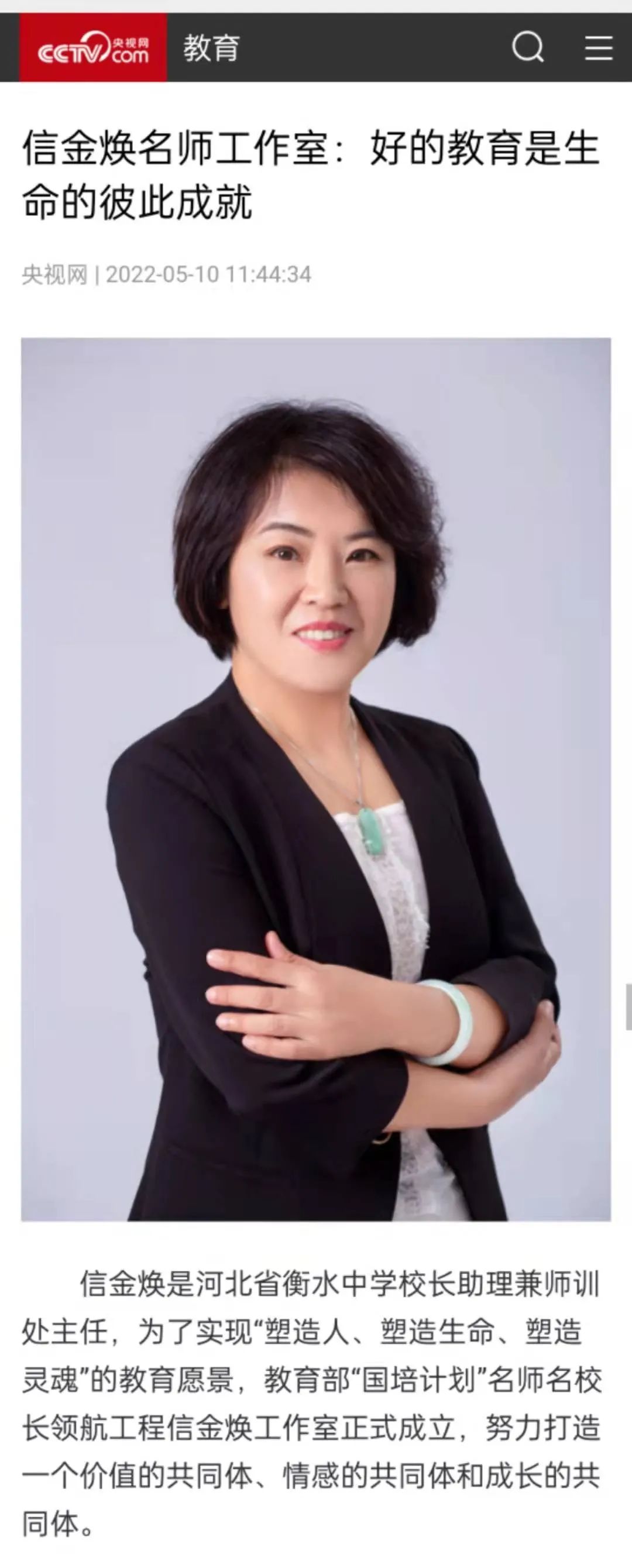 近日,央视网以“信金焕名师工作室:好的教育是生命的彼此成就”为题,报道了信金焕名师工作室的发展历程,详细介绍了“叙事语文”概念从提出到探索的阶段成就。