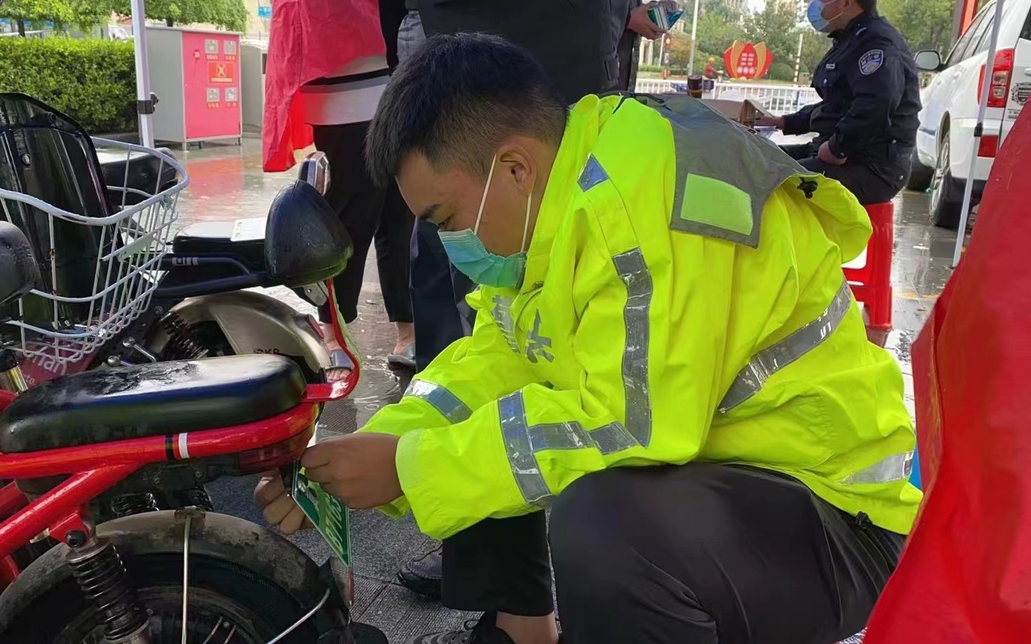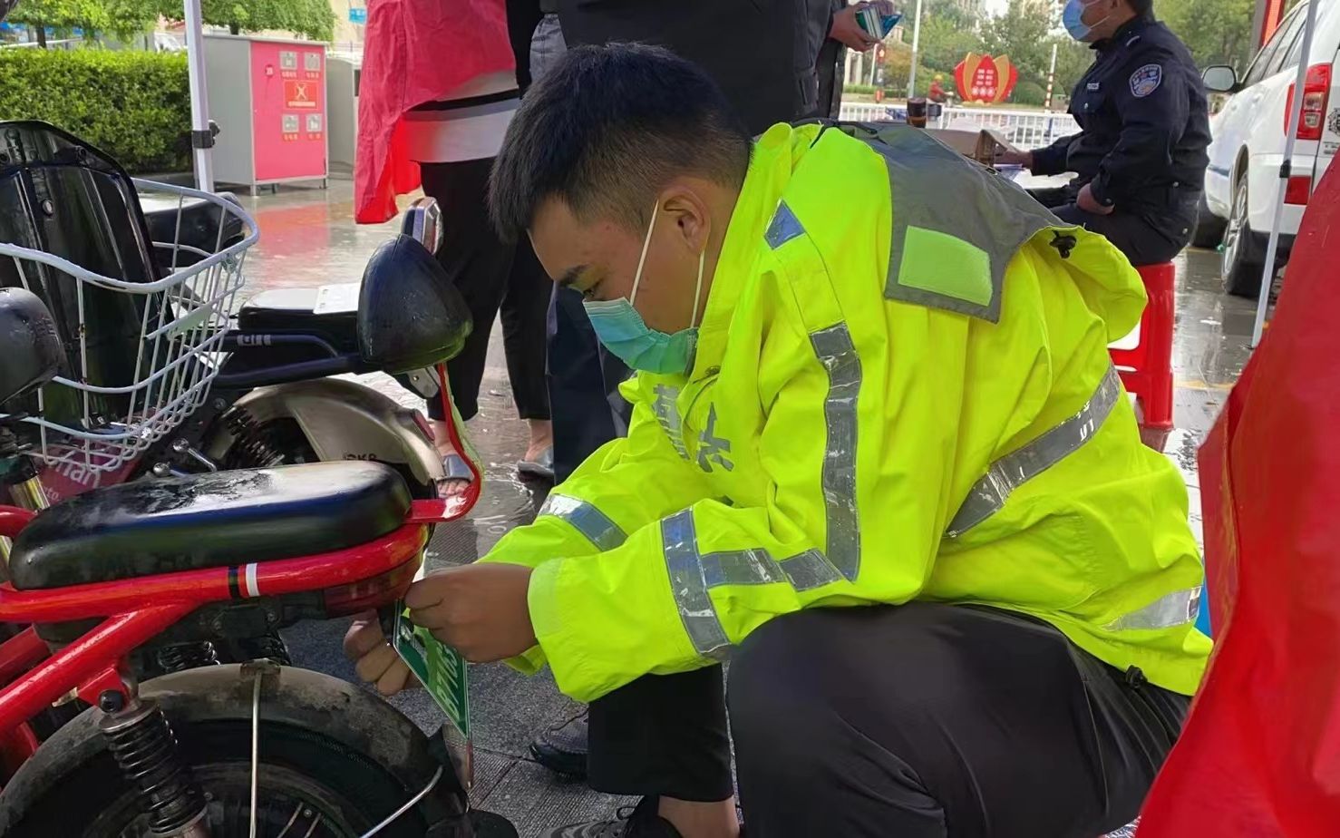 “我们上午8点半、下午两点半,就开始办理电动自行车登记上牌业务,岗上基本没有平峰期,人一直很多。”交警一边忙着为市民上牌,一边向记者介绍,大部分市民都是直接推着电动自行车前来办理业务,也有一部分人已经在河北交警官方微信上预约办理,待审核通过后,再到交通岗处找交警查验实车,现场领取号牌。不过,也有市民分不清自己的车是哪一种类型,本该填写领取临时号牌却误写成旧国标车类型,推到岗亭处后被要求“返工”。交警介绍,对于这部分车辆,如果仅是图片上传错误的,可以通过登记系统“我的车辆”栏目进行更改;如果属于车主信息、车辆类型等申请错误的,需要到线下上牌网点,由工作人员在核验车辆的同时更改信息。