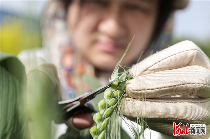 石家庄市藁城区农业科学研究所工作人员在为小麦“去雄”,这是小麦品种杂交过程中重要一环。 河北日报记者李东宇摄