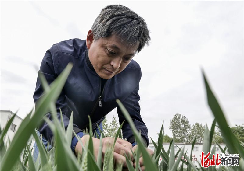 石家庄市藁城区农科所所长杨海川在试验田察看今年的小麦长势情况。 河北日报记者李东宇摄