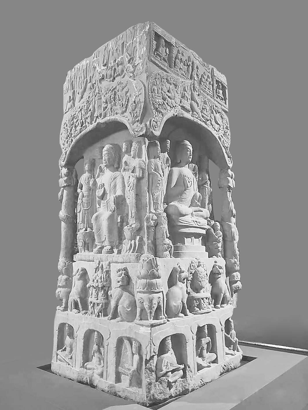 此造像塔雕刻内容丰富,层次分明,气魄宏伟,为馆藏一级文物。