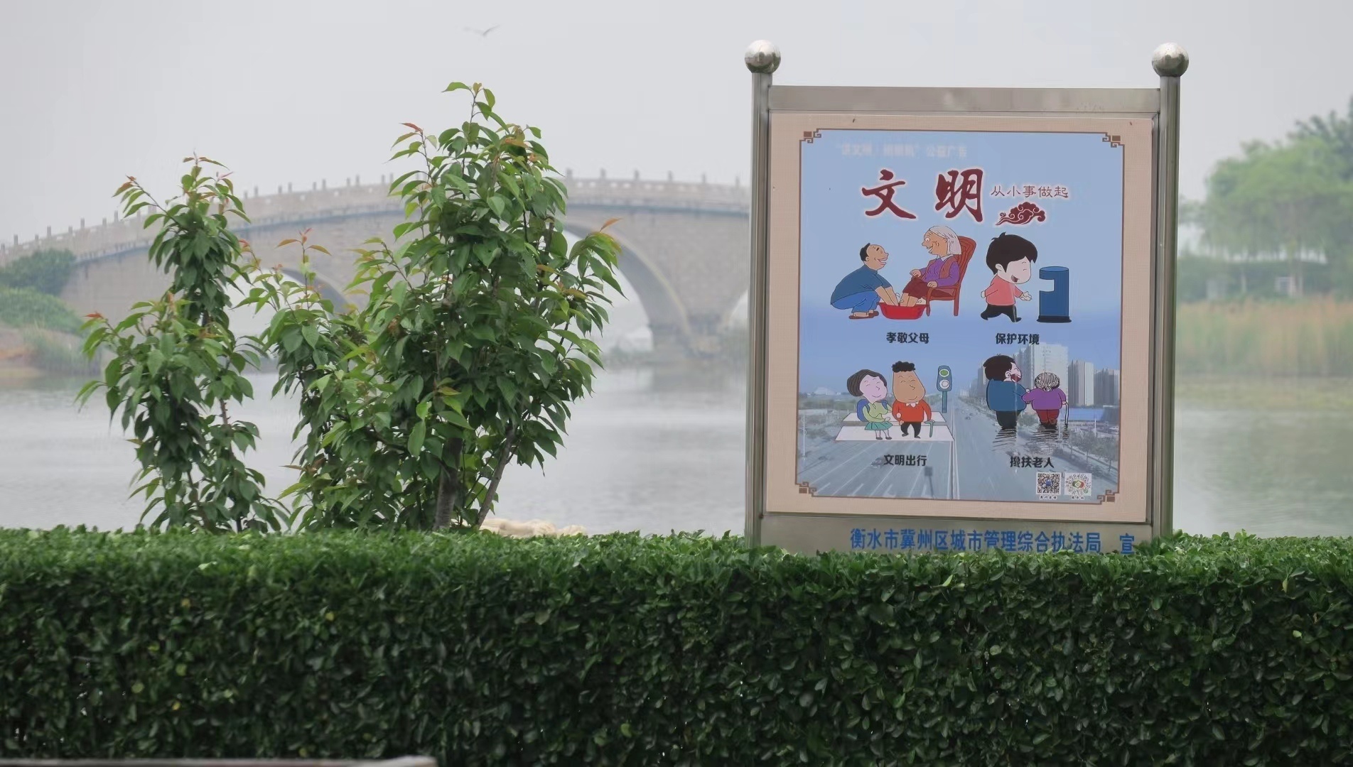 初夏时节,文明之风拂面而来。走在衡水冀州区的街道、公园广场、社区,多处以“文明城市创建”为主题的“小景观”为夏日冀州增添了亮丽的色彩。