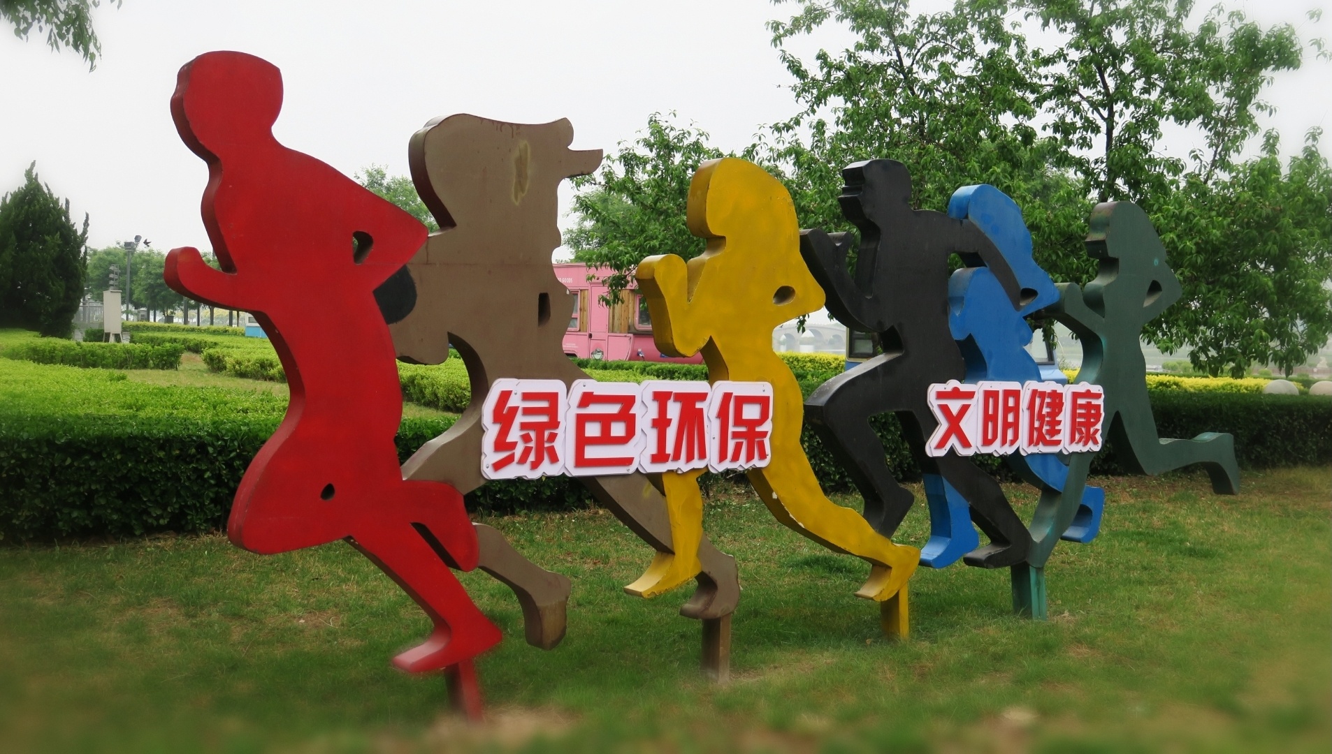 热情活力的景观宣传激励市民追求美好健康生活。齐冰 摄