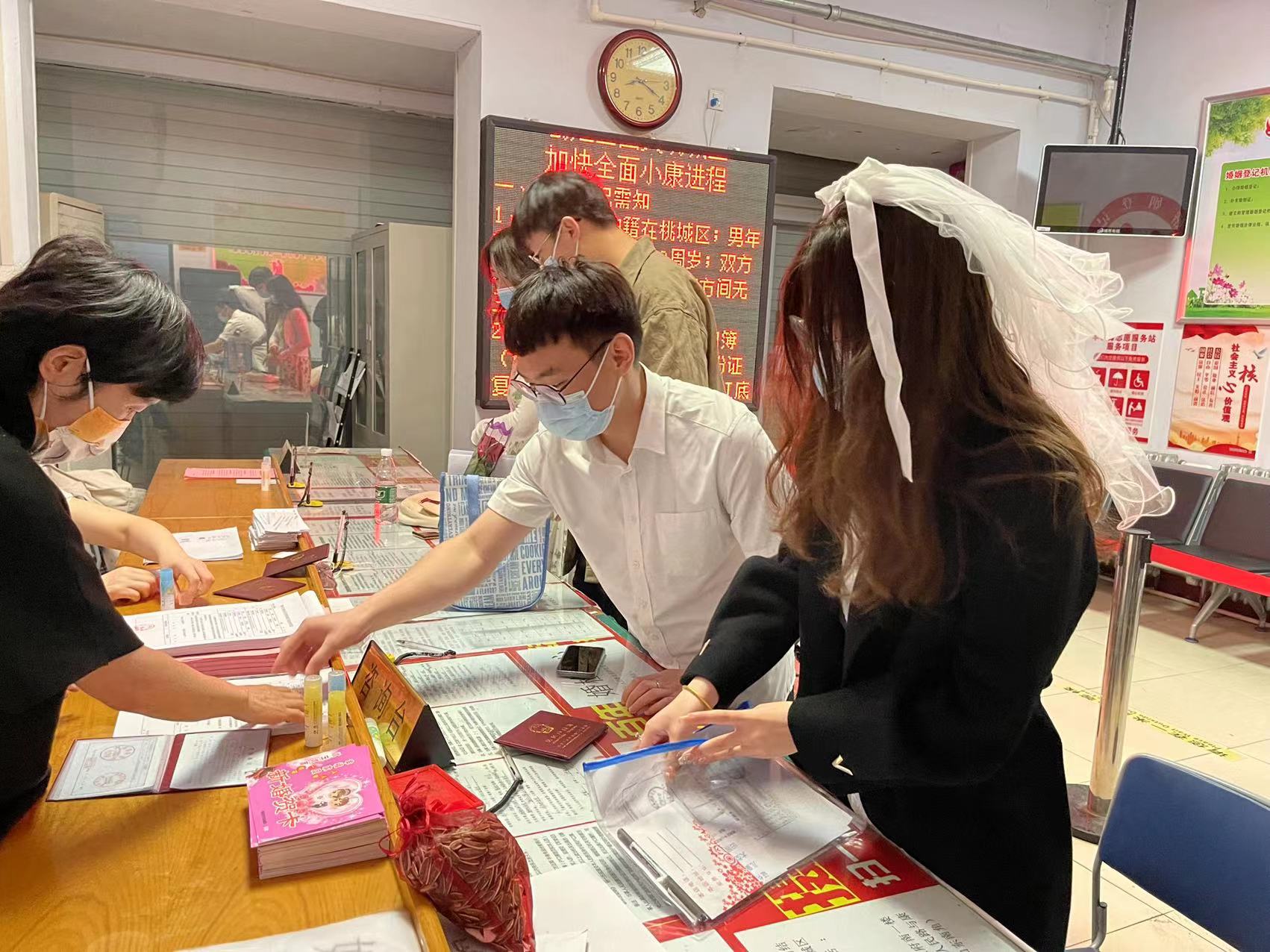 今天是5月20日,因为“520”谐音“我爱你”备受年轻人青睐。当天早晨,在衡水市桃城区婚姻登记处前,等待登记结婚的准新人们排起了长队。