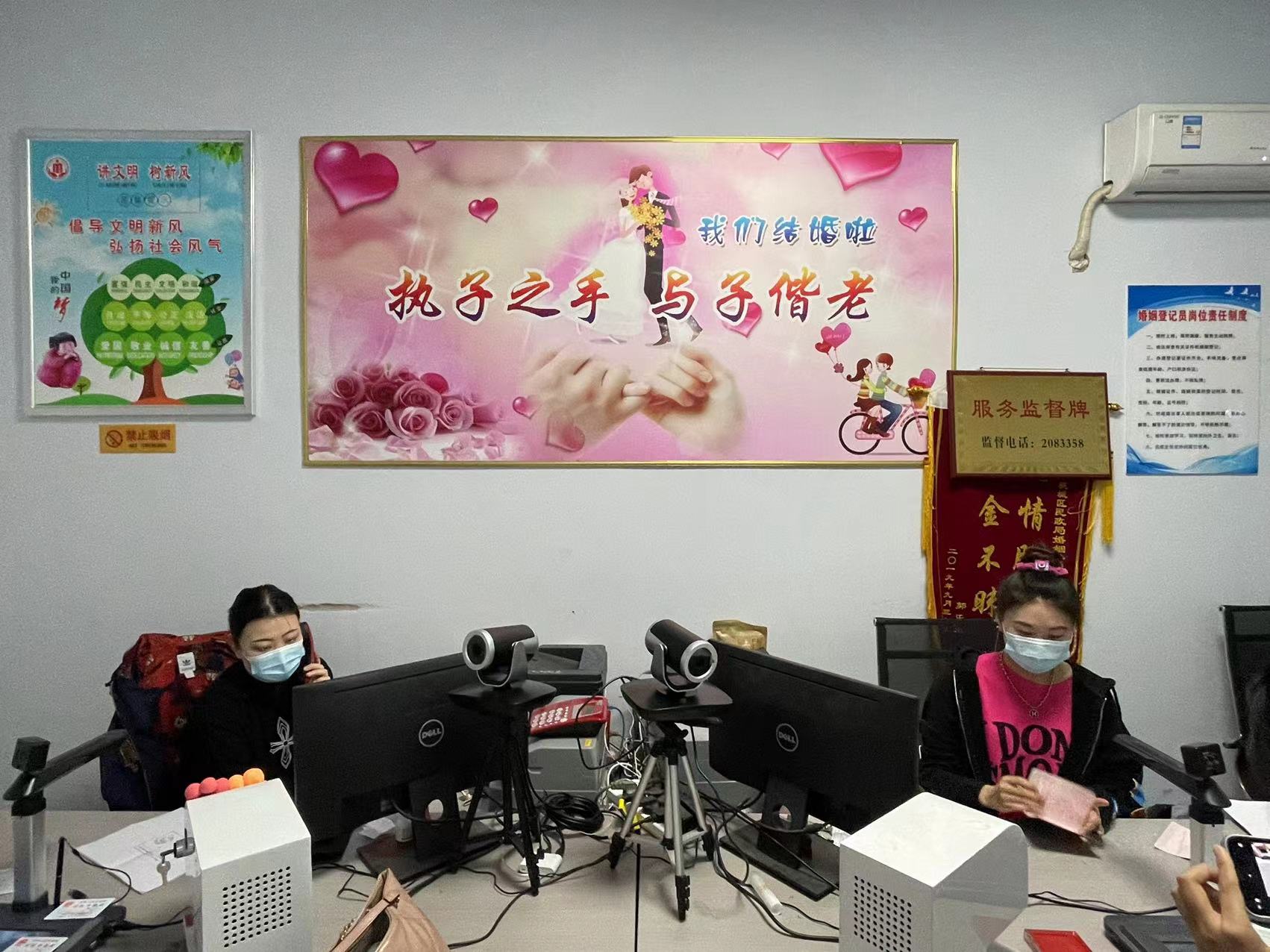 因为很多准新人选择在这一天领取结婚证,为应对新人扎堆登记的高峰状况和上级部门对疫情防控的要求,桃城区民政局婚姻登记中心采取了相应措施。记者看到,从早晨7时许,登记处的工作人员就已经到岗并开始做准备了,他们提前对设施设备和信息系统进行了检查维护。据桃城区婚姻登记处主任蒋杰芳介绍,登记处还专门增派了工作人员测量体温、查看健康码、行程卡,引导新人们分批次进入登记处,防止人员聚集,确保婚姻登记工作忙而不乱,井然有序,预计今日办理结婚登记的新人将达100余对。