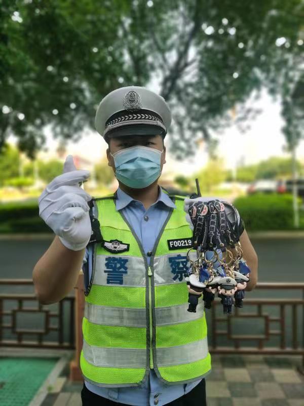为助力电动自行车免费上牌业务,倡导市民文明安全出行,5月20日,衡水市交警支队直属二大队交警走上街头,将可爱的交警卡通人物钥匙链送给已为电动自行车上牌的市民们。