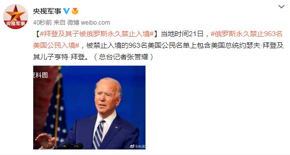 当地时间21日,俄罗斯外交部公布永久禁止入境的美国公民名单,名单上共有963人。据悉,被禁止入境的963名美国公民包含美国总统约瑟夫·拜登及其儿子亨特·拜登。