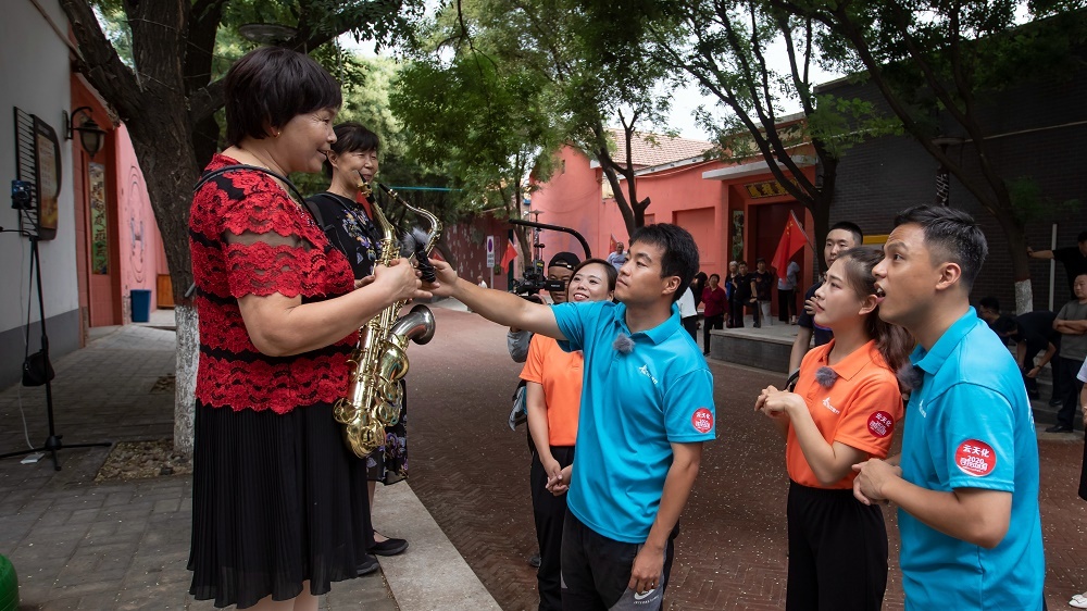 周窝音乐小镇的农民乐手接受媒体采访。郭永杰 摄于2020年