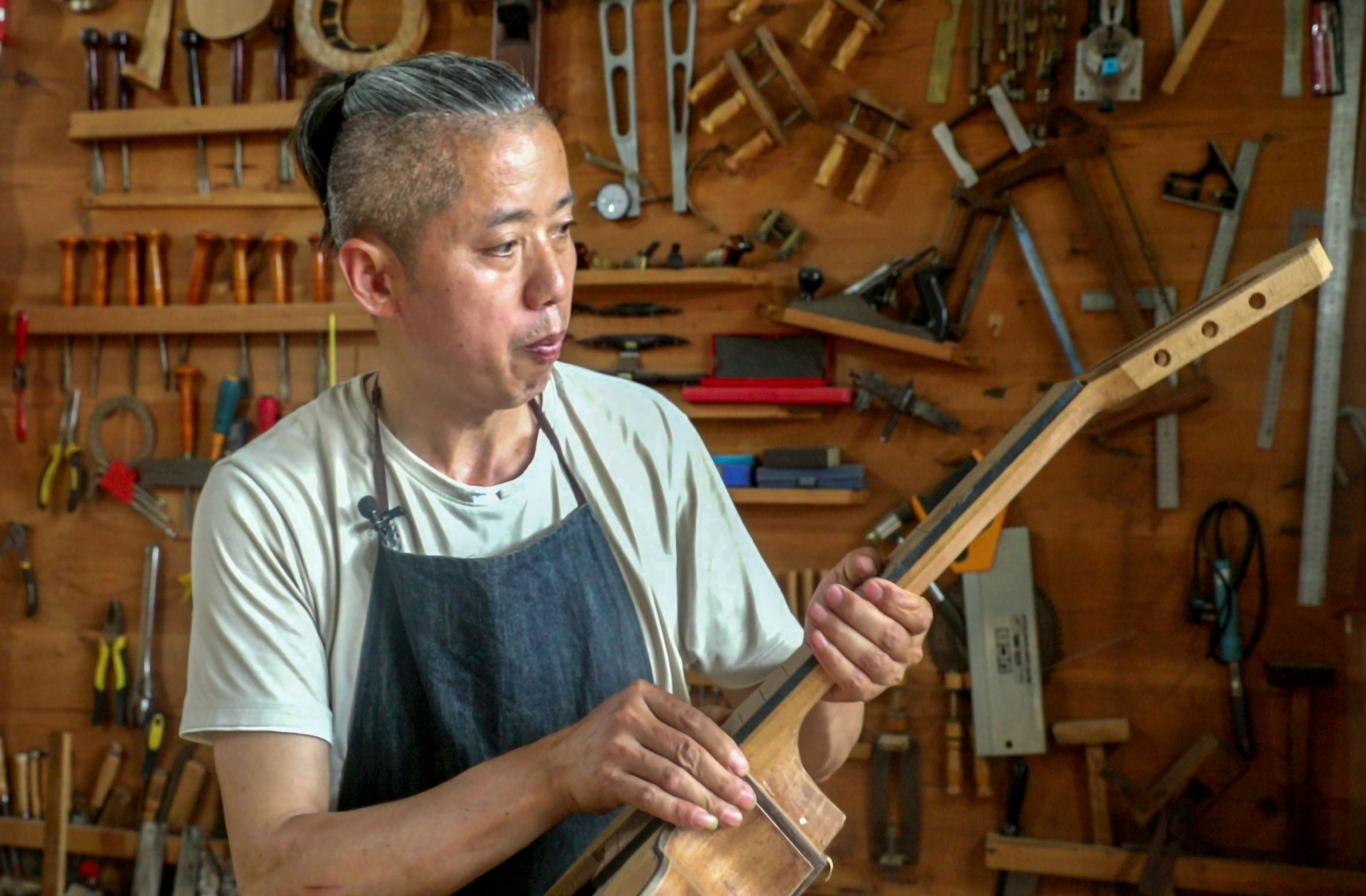 周窝音乐小镇吸引四川吉他制作艺人彭科飞前来“落户”。郭永杰 摄
